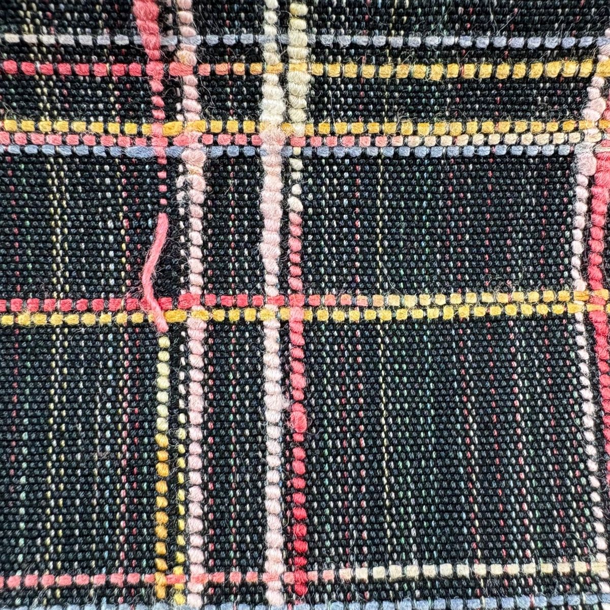 垂境など所々にシワ、垂境の裏側に生地のヨレ、表地所々に糸のほつれと節がございます。
