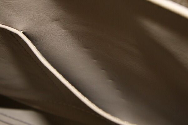 状態:外側:型崩れあり。所々小キズ・薄スレあり。僅かに角スレあり。内側:シワ、薄汚れ、サイドに凹みキズあり。金具:小キズ、クスミあり。