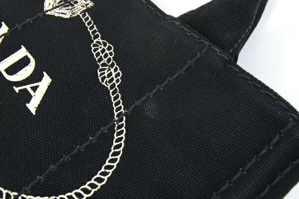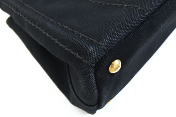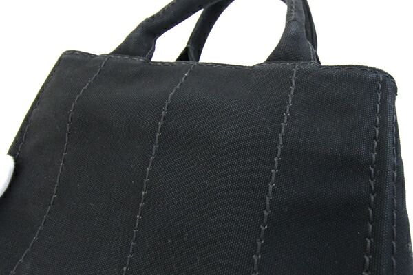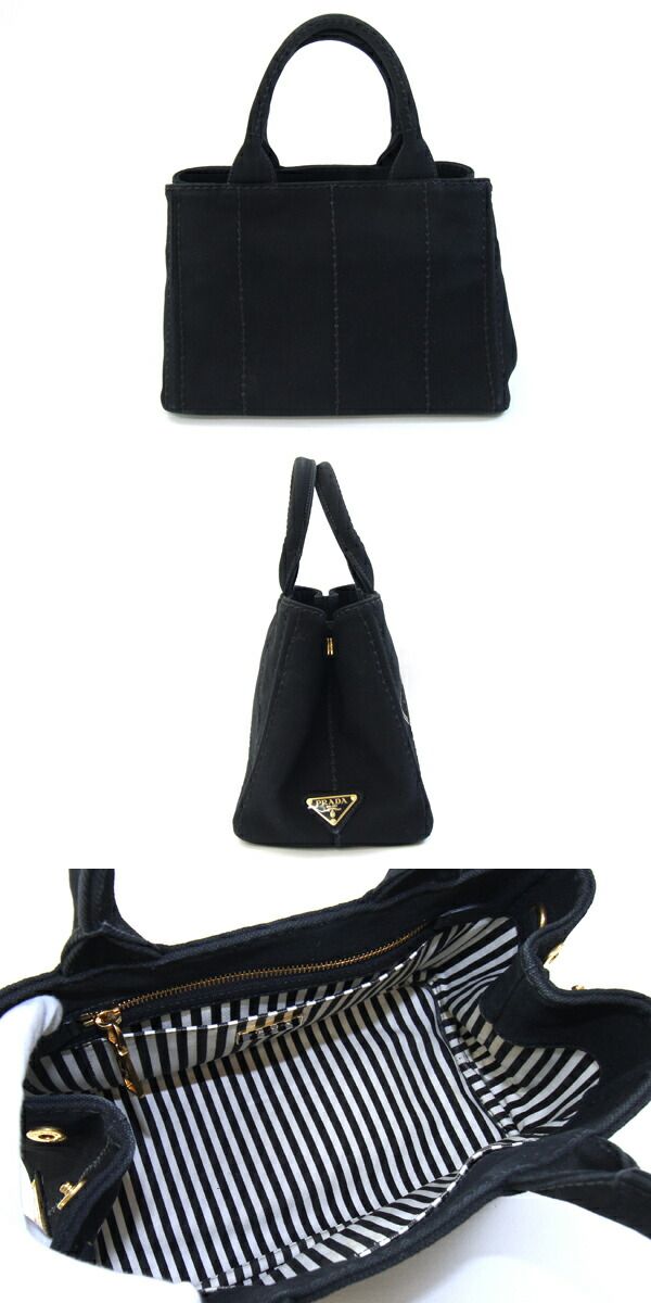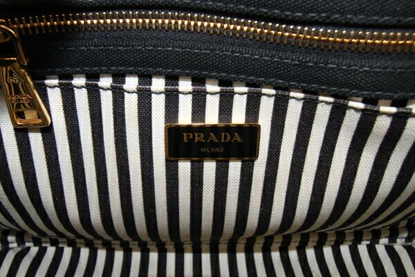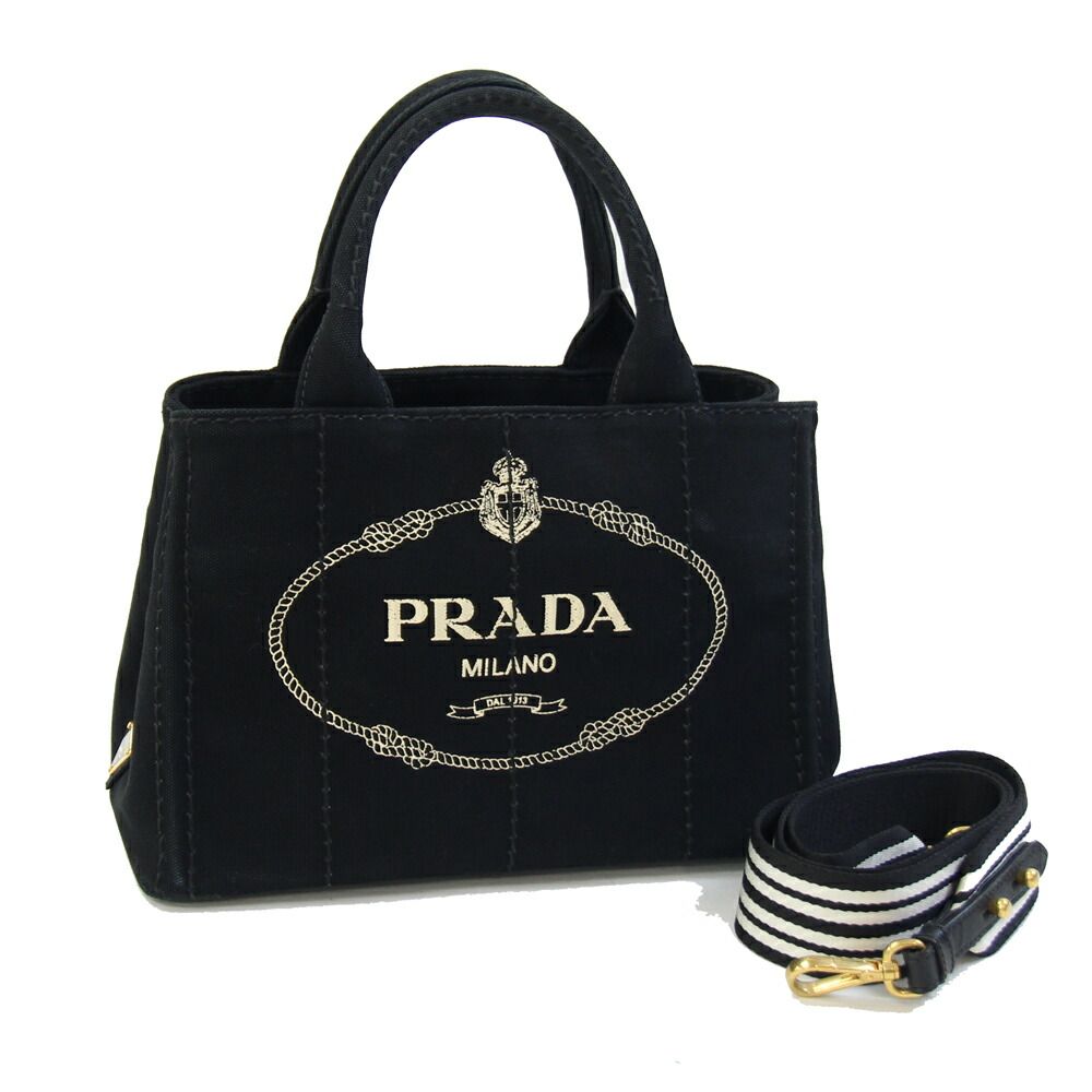 プラダ2WAYハンドバッグカナパ1BG439ブラックキャンバス中古ショルダー斜め掛けストライプロゴレディースPRADA