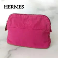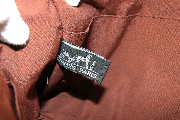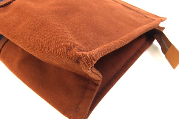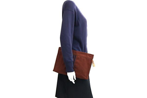 エルメスクラッチバッグフールトゥブラウンネイビーコットンキャンバス中古セカンドバッグポーチメンズレディースHERMES