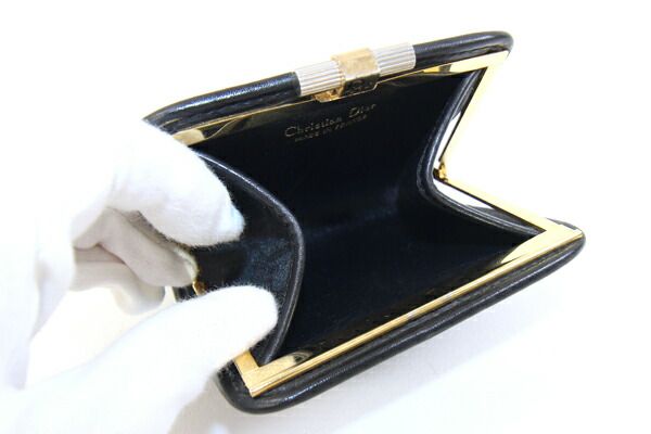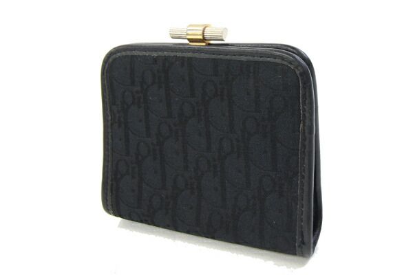 ディオールコインケースブラックキャンバスレザー中古小銭入れトロッターミニ財布ヴィンテージオールドレディースChristianDior