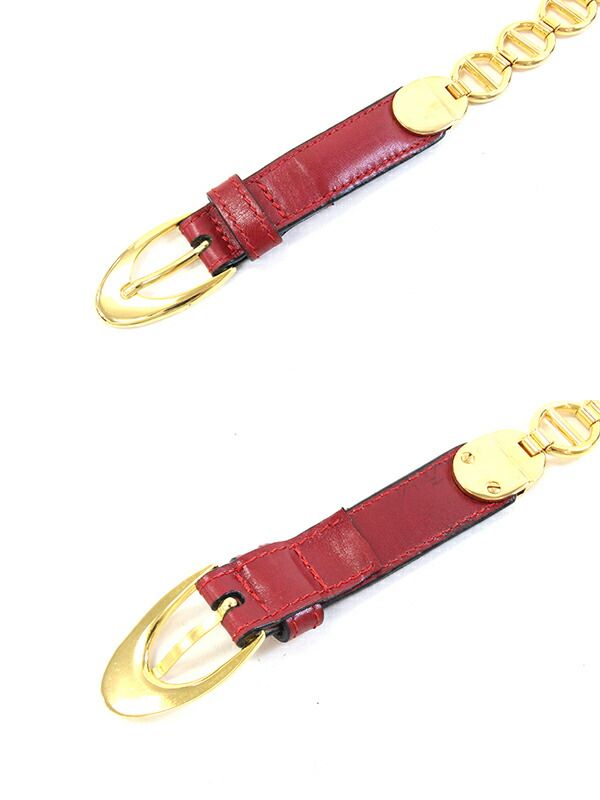 ディオールベルトレッドゴールド金具レザー中古ファッションアパレル飾りベルトヴィンテージオールドレディースChristianDior
