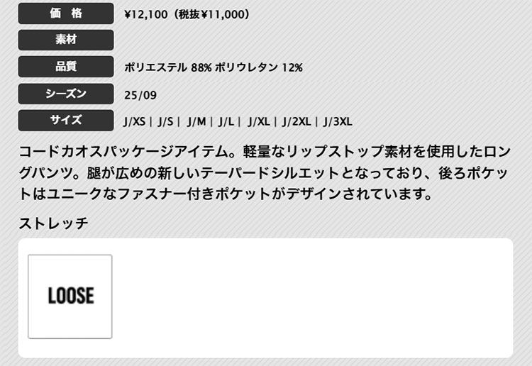 コードカオスパッケージアイテム。軽量なリップストップ素材を使用 男性用