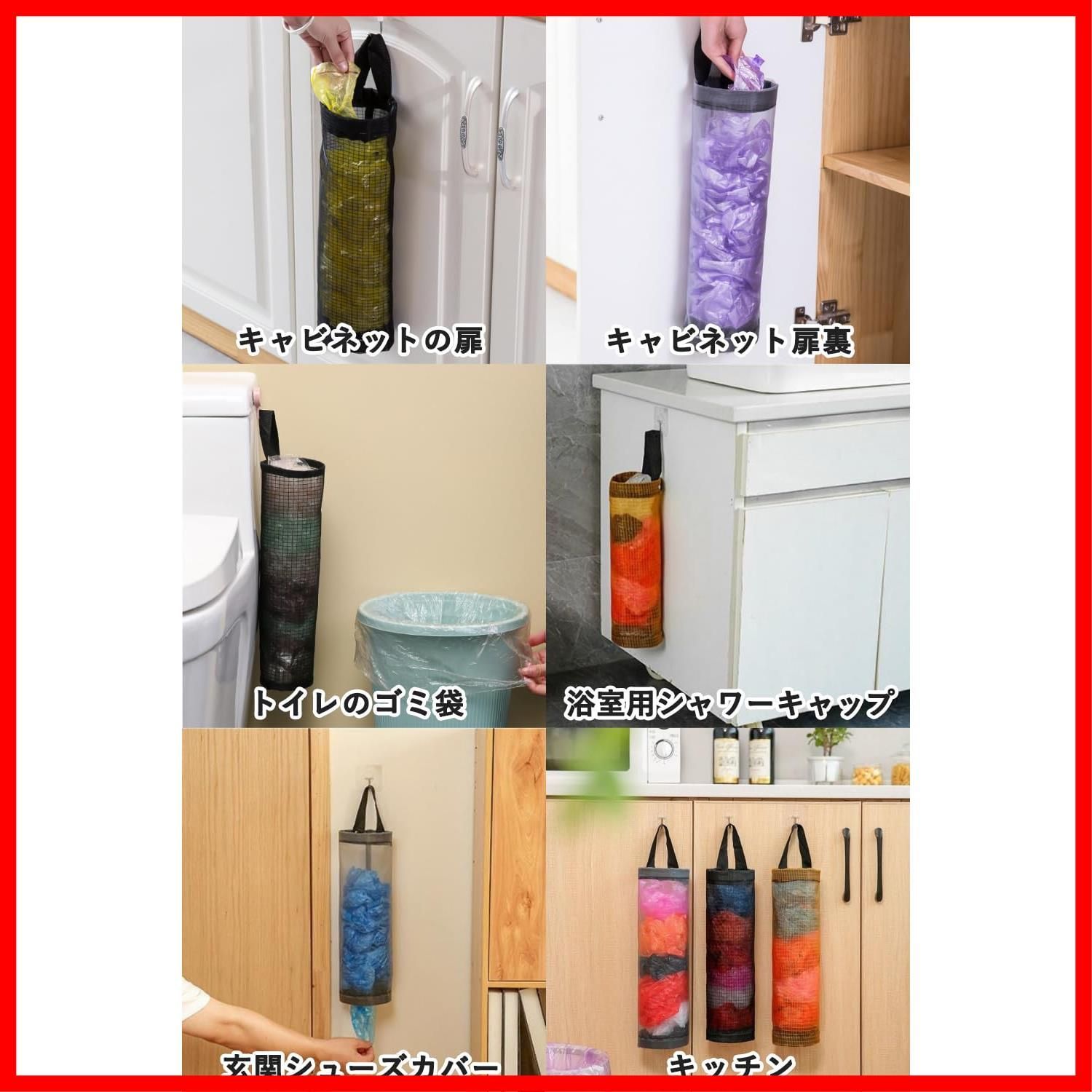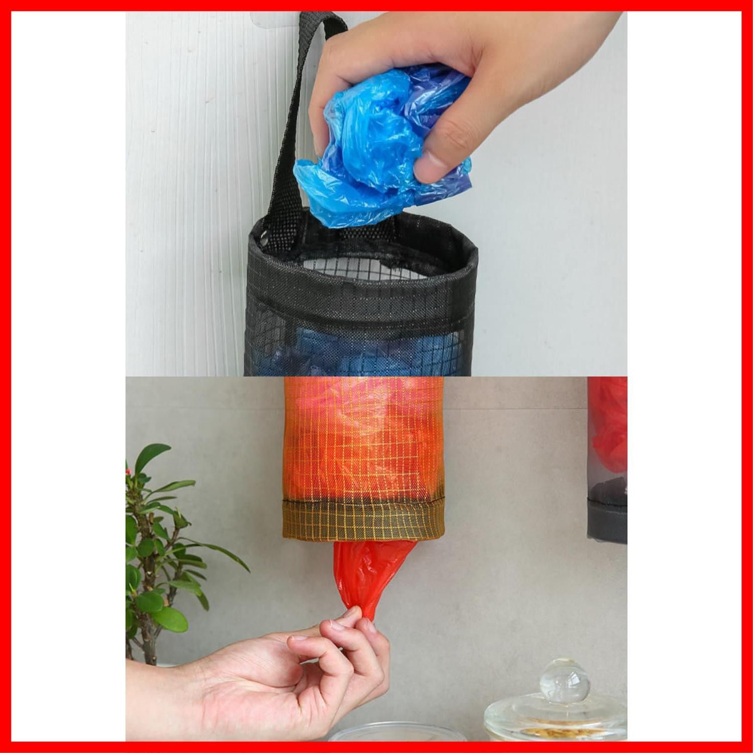 ビニール袋、買い物袋、ゴミ袋などを取り出しやすく収納可能。使い捨ての靴カバーを入れることもできます。