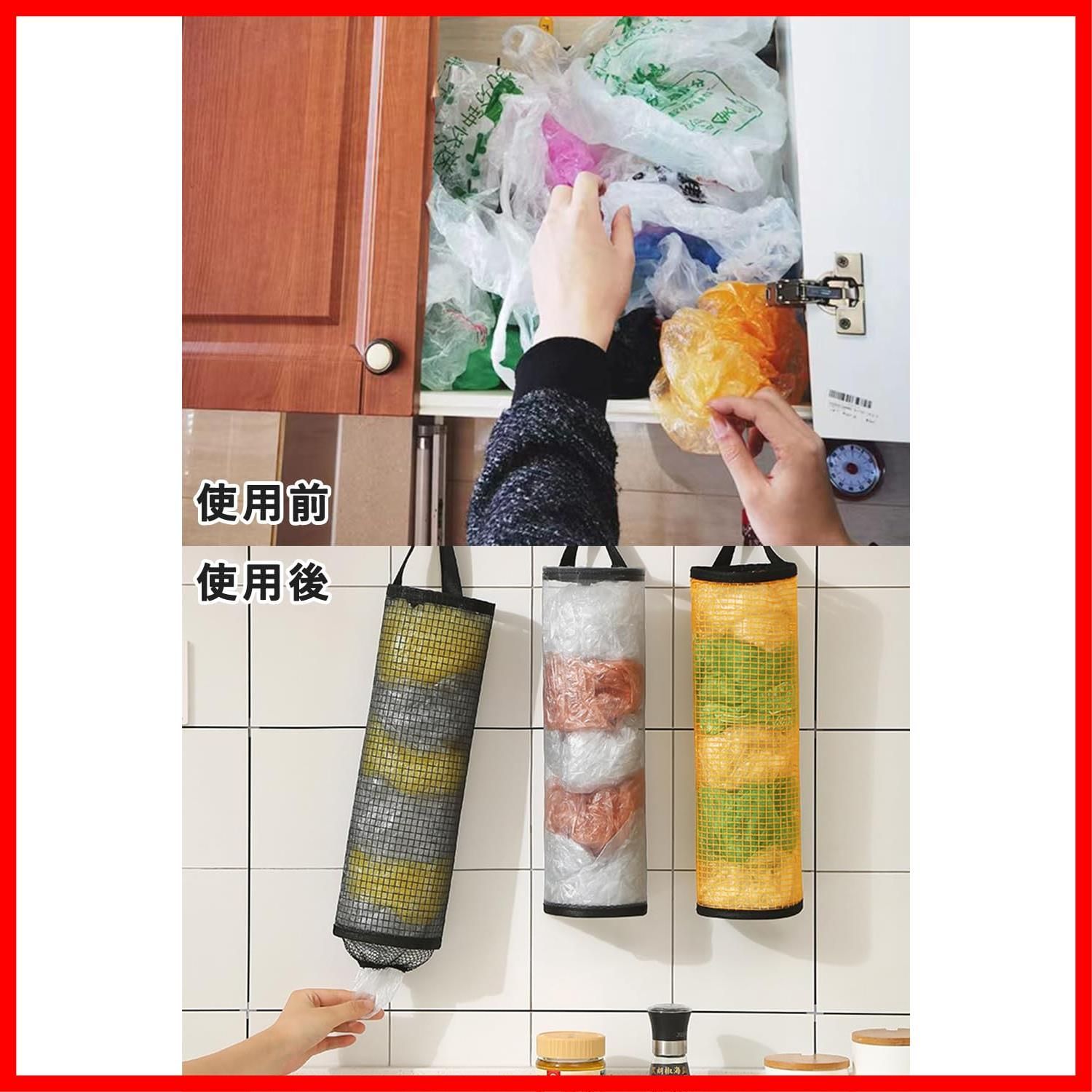 harukita レジ袋ストッカー ポリ袋ストッカー ゴミ袋収納 プラスチックバッグホルダー レジ袋 キッチン収納 壁掛け 吊り下げ 取り出せ便利 ゴミ袋ストッカー ホームとキッチン用(3個入)