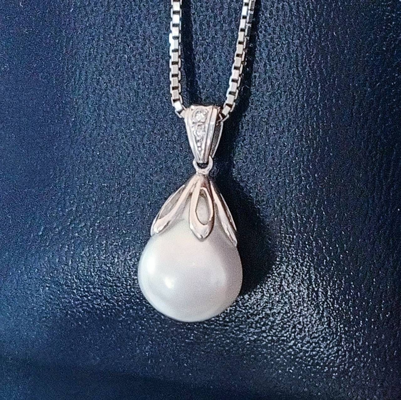 真珠の自然な輝きと、洗練されたプラチナ素材の組み合わせが特徴です。