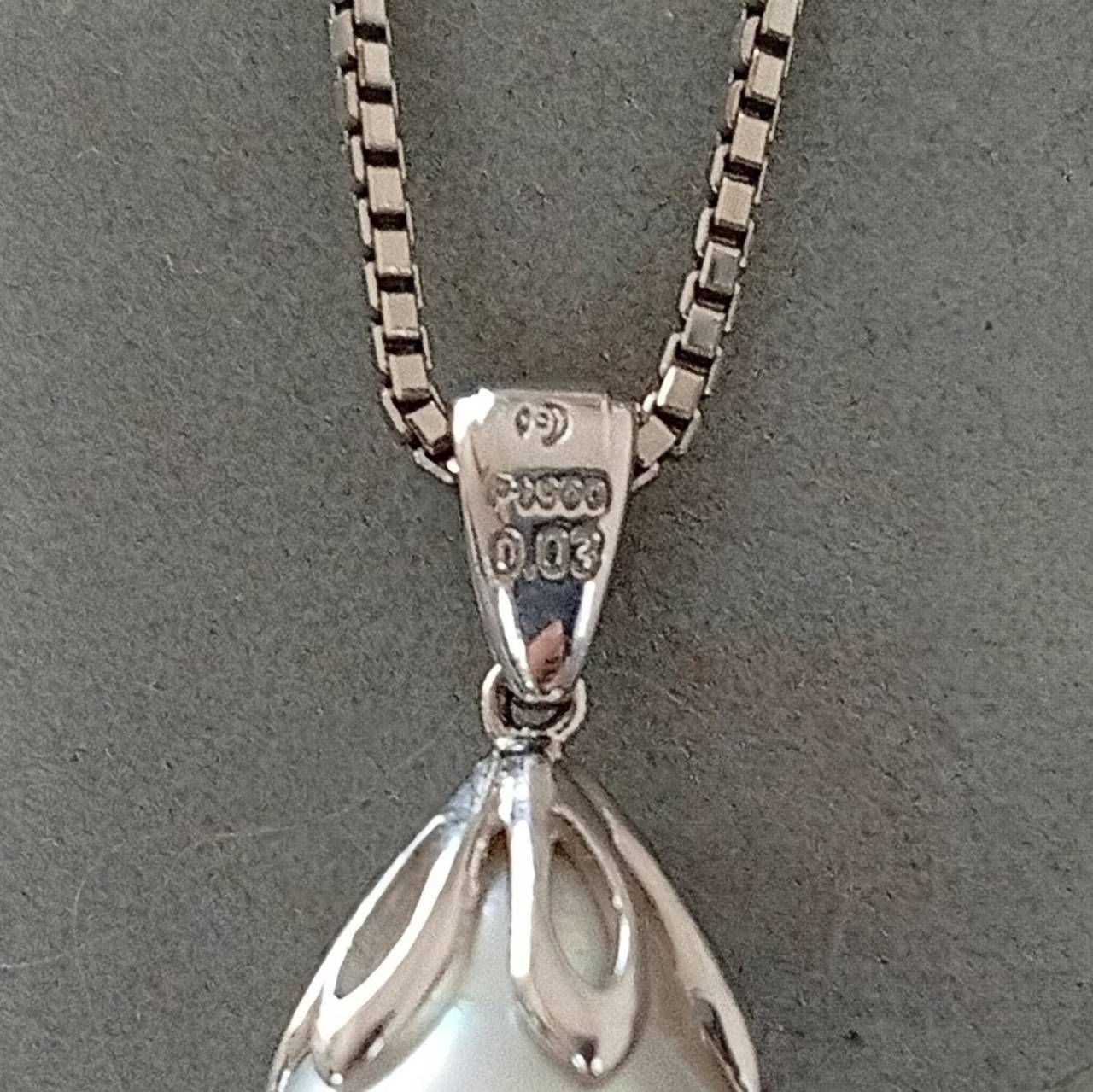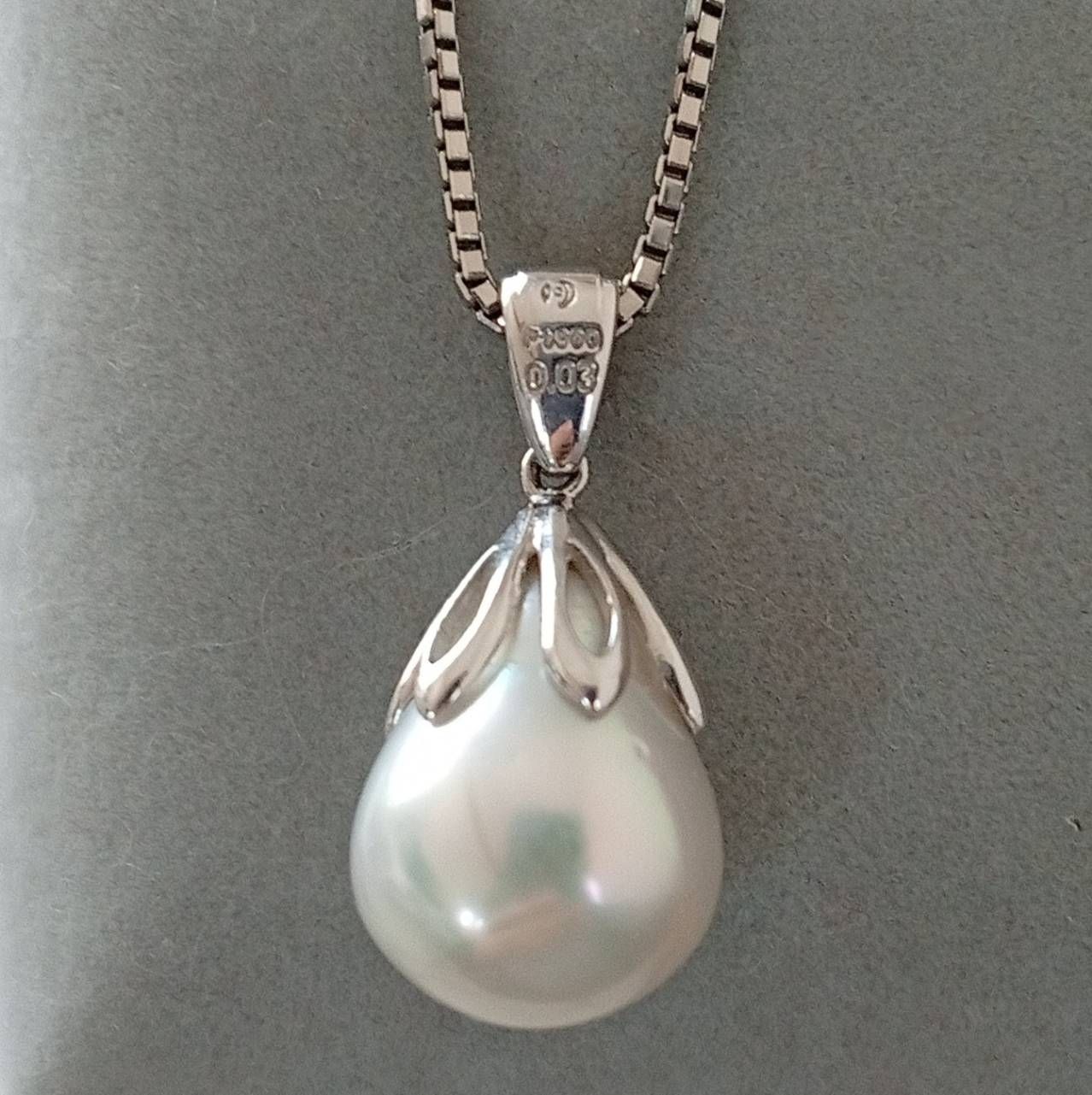 【未使用】TASAKI タサキ 田崎真珠 PT900 パール ダイヤモンド ペンダントヘッド マベパール 本真珠 ドロップ オーバル 白蝶真珠 南洋真珠 0.03ct Pt プラチナ 41cm パール:横11.8mm