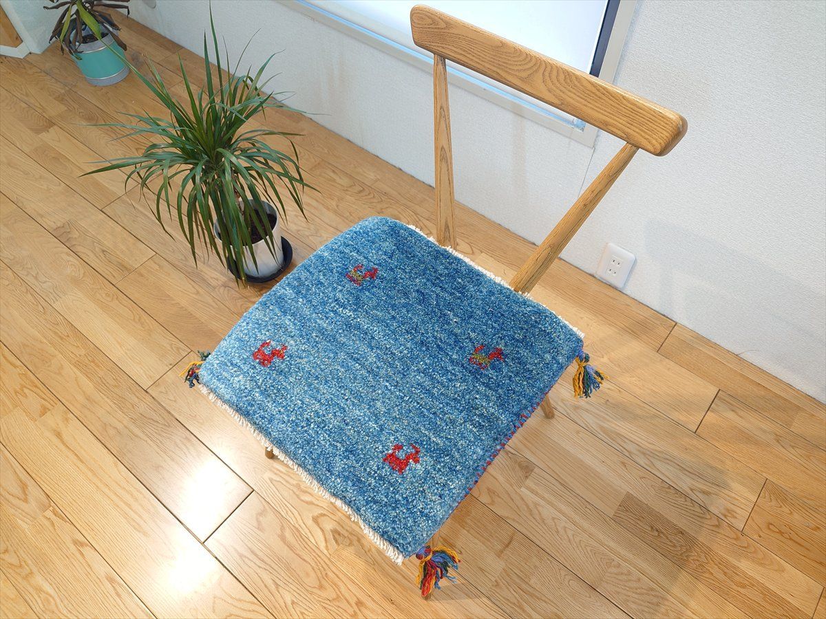 ペルシャ絨毯の青色はオアシスを表しています。ギャベの青色は夜空などを表しております。