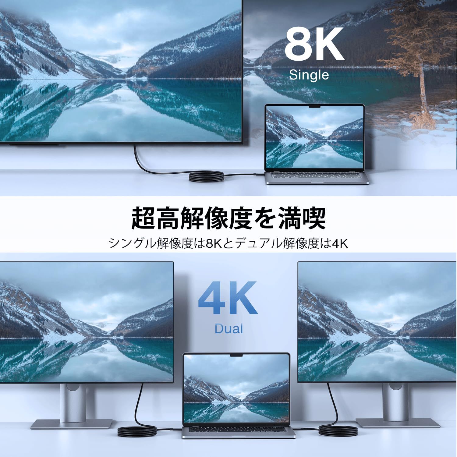 【高画質出力】1台のモニターには最大8K、2台のモニターには4Kに対応しており、家庭での映画鑑賞やゲーミング体験をより鮮明で迫力あるものにします。特に、映像制作やデザイン作業に最適です。