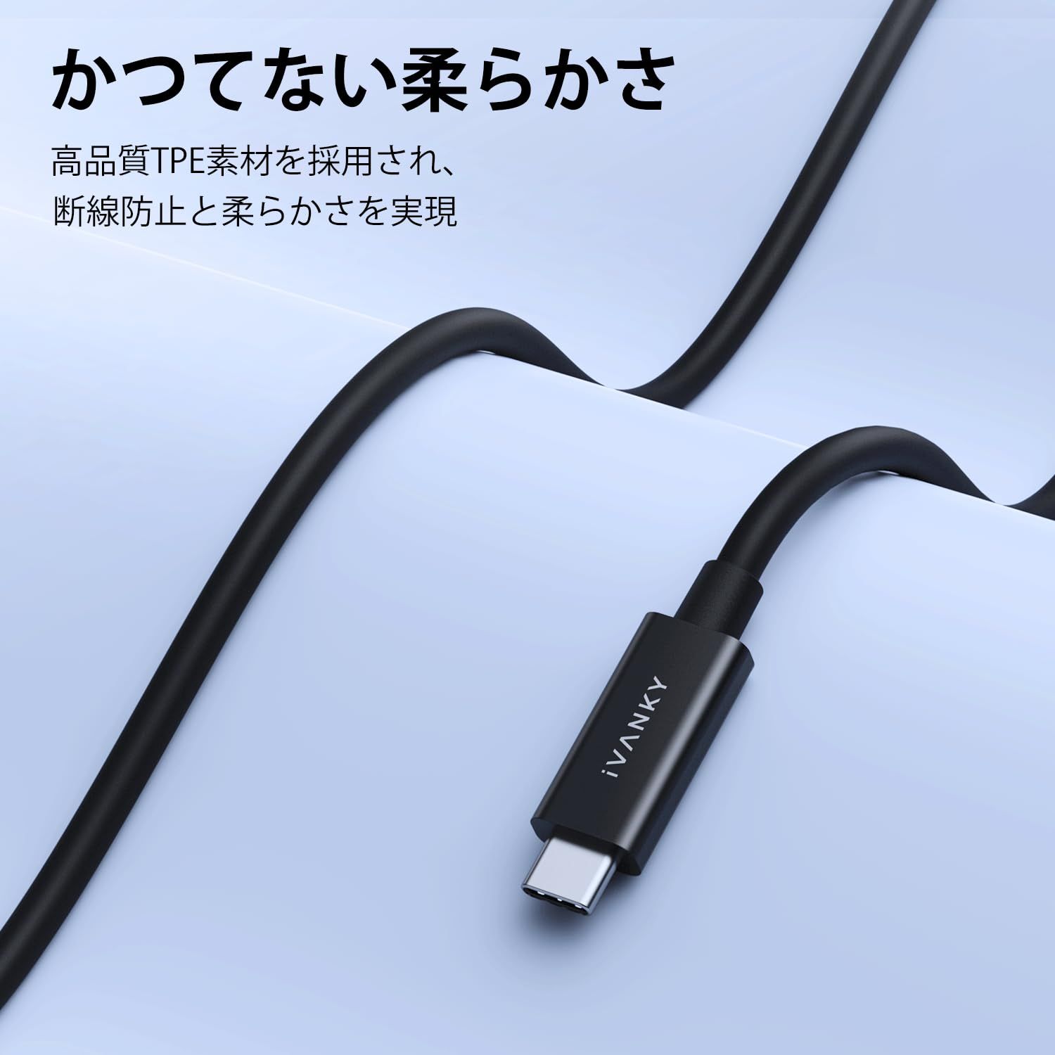 【高品質素材】このThunderbolt 4 ケーブルは高品質TPE素材を使用しており、柔軟性がありつつも断線しにくい設計。長期間の使用でも耐久性を維持し、ケーブルの取り扱いが容易です。