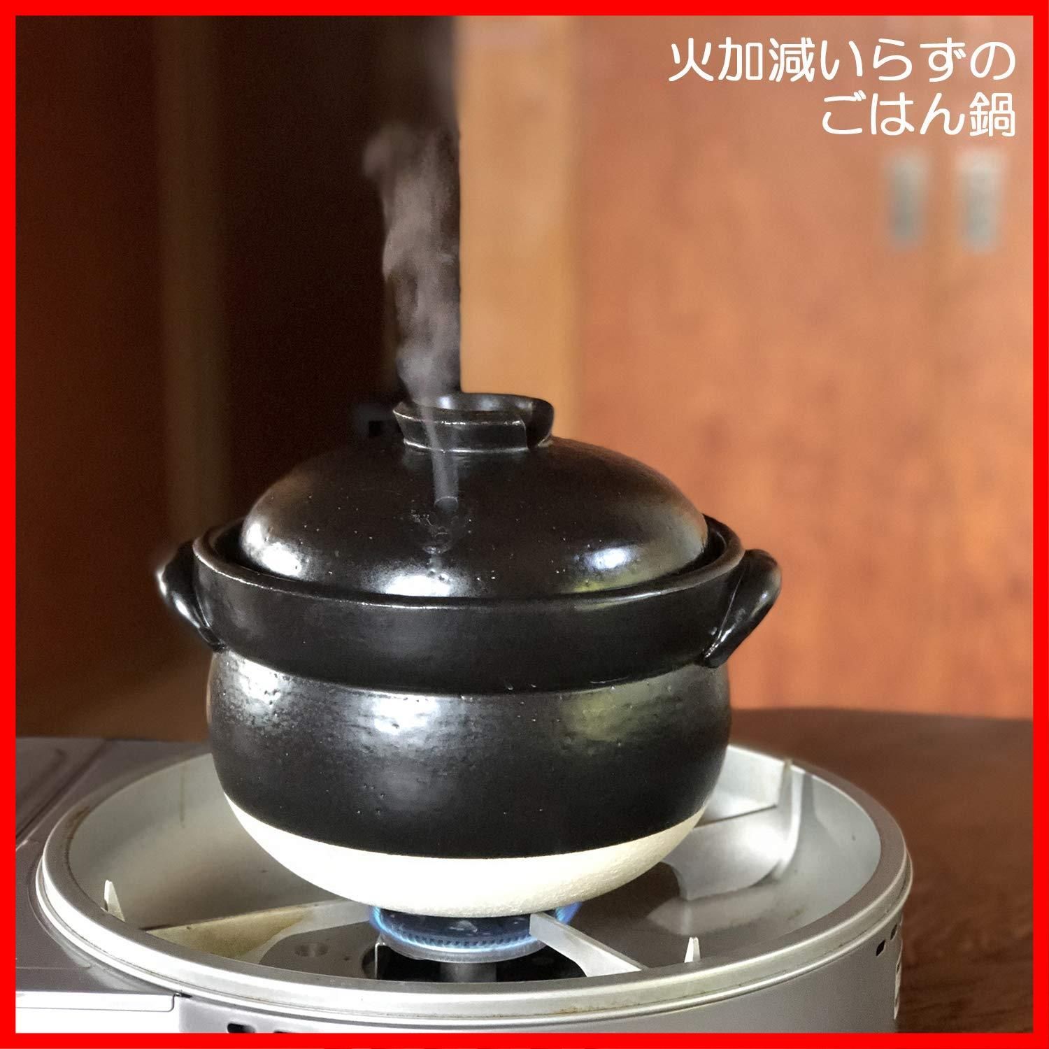 佐治陶器 萬古焼 ご飯鍋 ごはん釜 3合炊き 黒 ブラック 直径約19.5cm 絶品 ごはん鍋 (中蓋付) 日本製 30-1