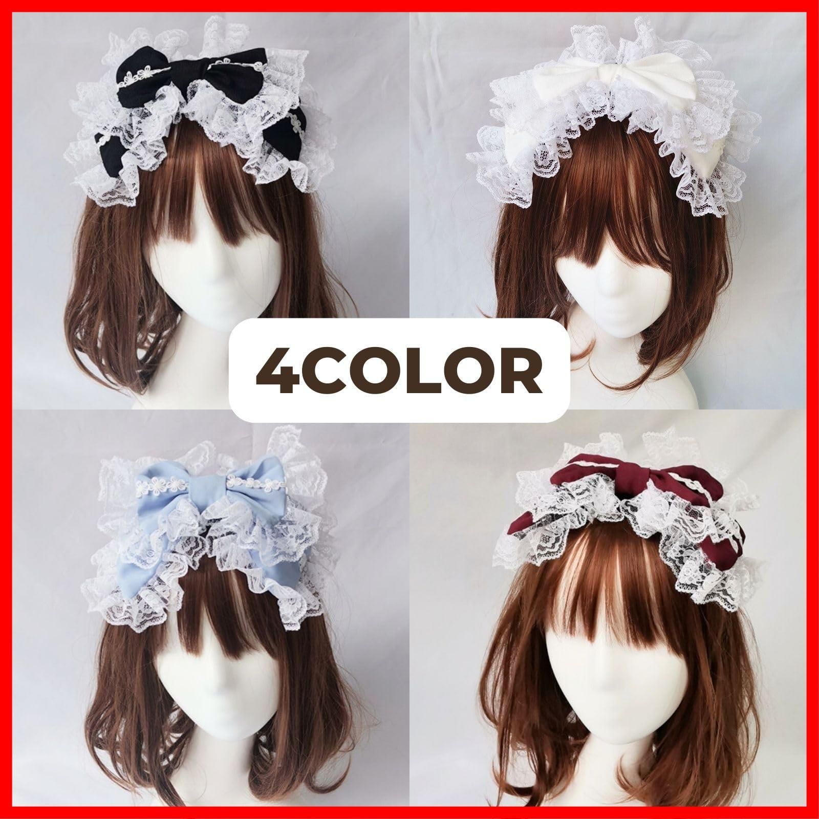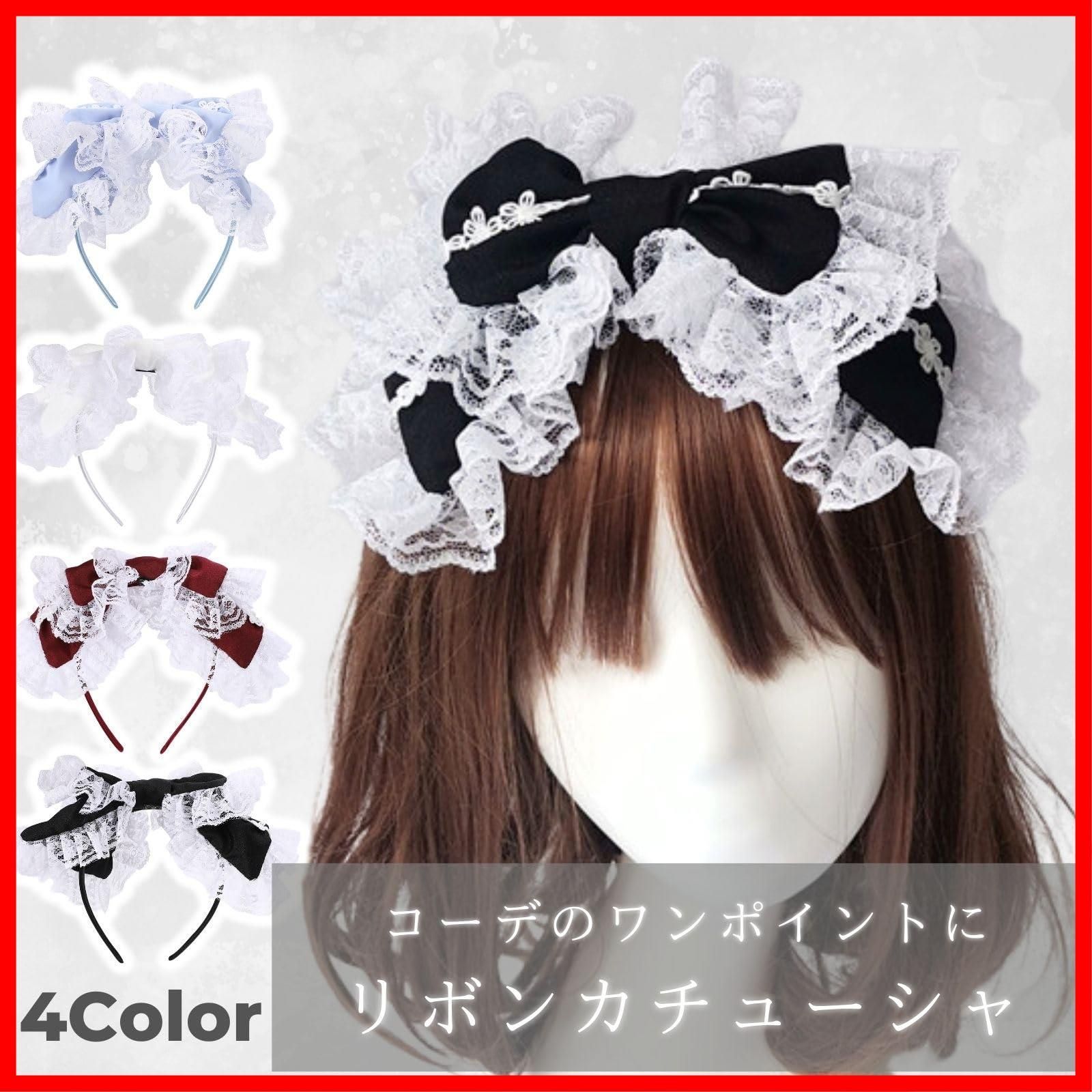 [HARGIO] カチューシャ レディース ヘアバンド ヘアアクセサリー ヘッドドレス リボン レース ブラック ホワイト レッド ブルー 黒 白 赤 水色 地雷系 量産型 姫 韓国 ロリータ ゴスロリ ガーリー ヘアアクセ かわいい おしゃれ 人気 (ホワイト)