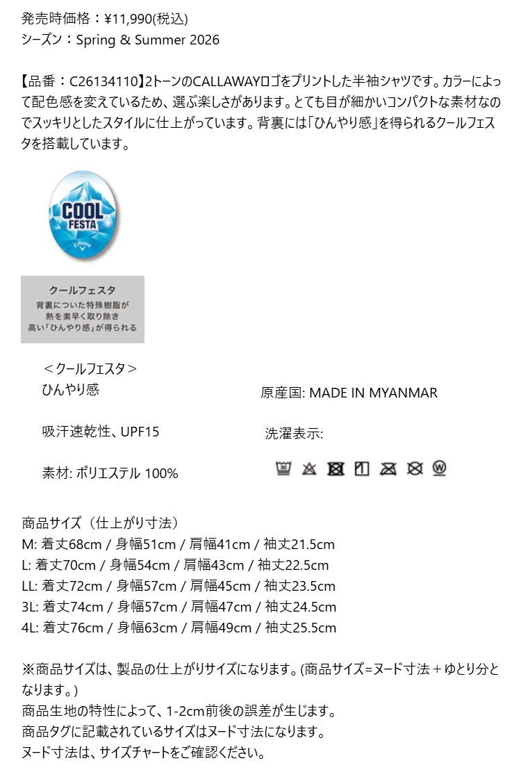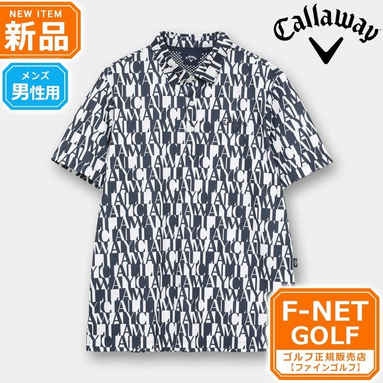 新品【メーカー正規仕入品】【1120ネイビー】2026年 春 夏 新作 Callaway GOLF キャロウェイ ゴルフウェア C26134110 ミニカノコロゴ 総柄 半袖 シャツ ポロシャツ [冷感素材 吸汗速乾性、UPF50](メンズ)☆