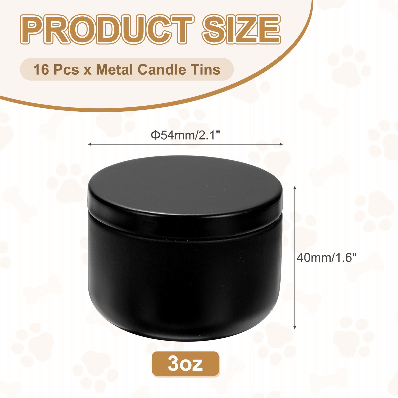 サイズ:54x40mm/2.1x1.6インチ(直径x高さ)/色:黒/パッケージ内容:金属キャンドル缶x16個
