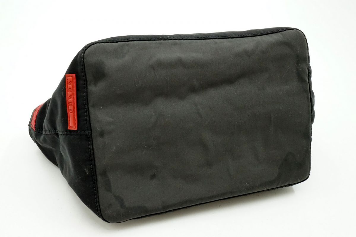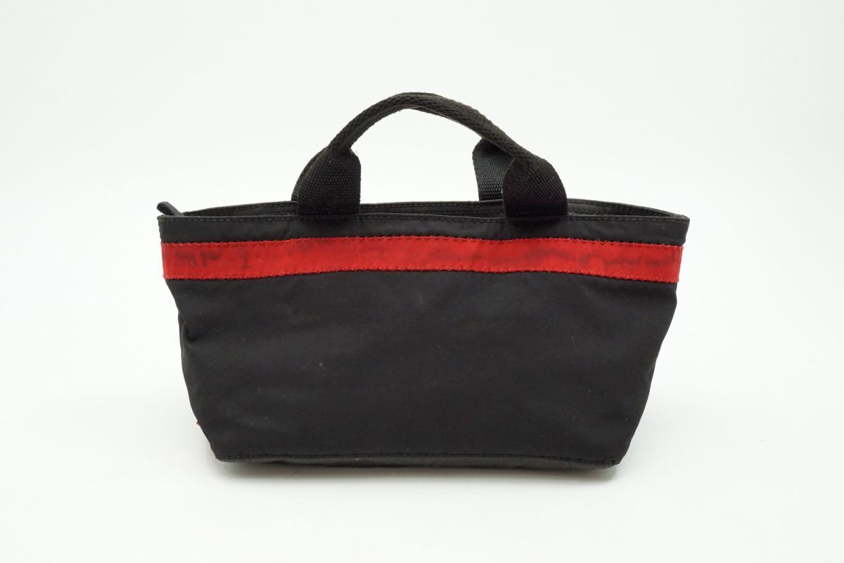 プラダ スポーツ ミニ ハンドバッグ アクセサリーポーチ レッドライン ナイロン 黒 ブラック PRADA SPORT 5662h