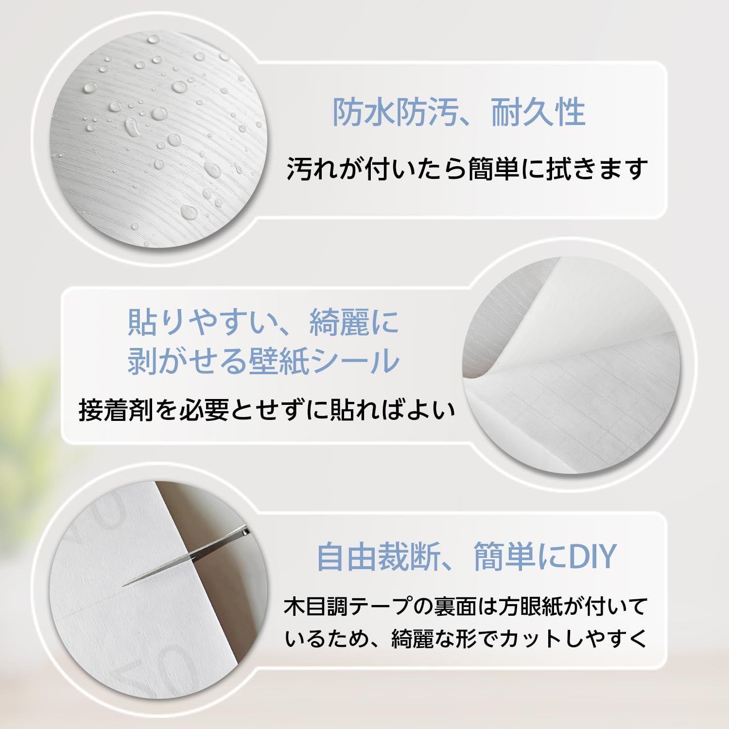 【防水防汚、お手入れ簡単】幅広マスキングテープは優れた強化PVC素材を採用して、耐摩擦性や耐久性が優れています。木目テープは防水・防汚・防カビ性に優れてい、清潔で簡単です。貼り付けた後、木目調マスキングテープの表面に汚れがあれば、濡れたタオルで拭くだけで、壁や家具を効果的に保護します。