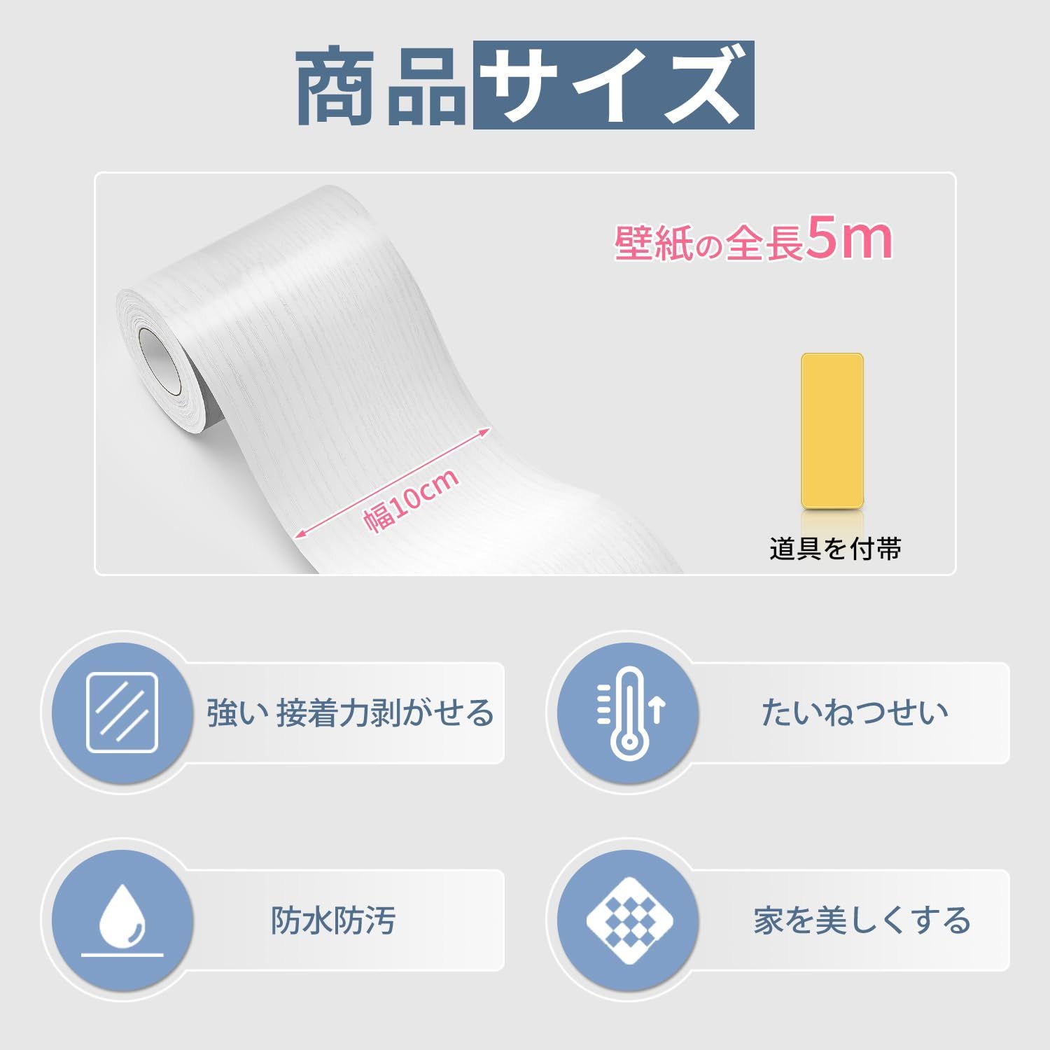 マスキングテープ 木目 テープ 白 リメイクシート 防水 木目調 巾木シート 木口テープ 厚手 窓枠用リメイクシート 木目 補修テープ はがせる壁紙 木目シート インテリアテープ 木目 幅広 幅10cm x 長さ5m 家具用リメイクシート 簡単 diy 木目テープ (道具を付帯)