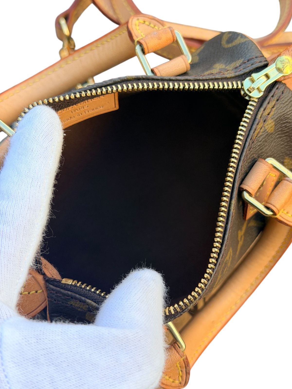 内側:保管により僅かの薄いヨゴレあり、目立った大きなダメージなく綺麗な状態です。