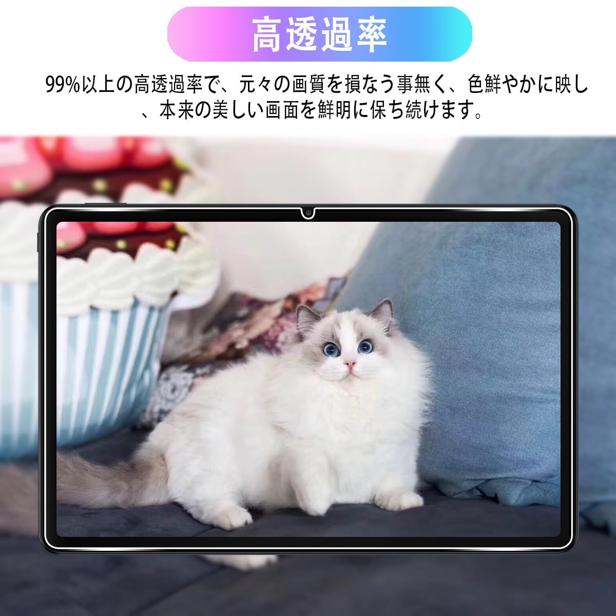 【高透過率】 対応 保護フィルム 高透過率で、元々の画質を損なう事無く、色鮮やかに映し、本来の美しい画面を鮮明に保ち続けます。