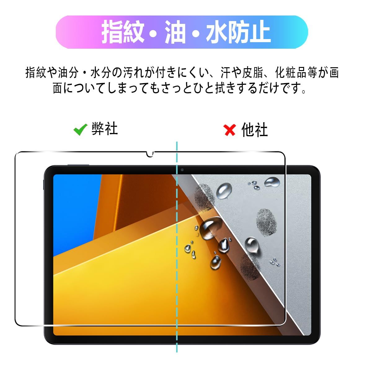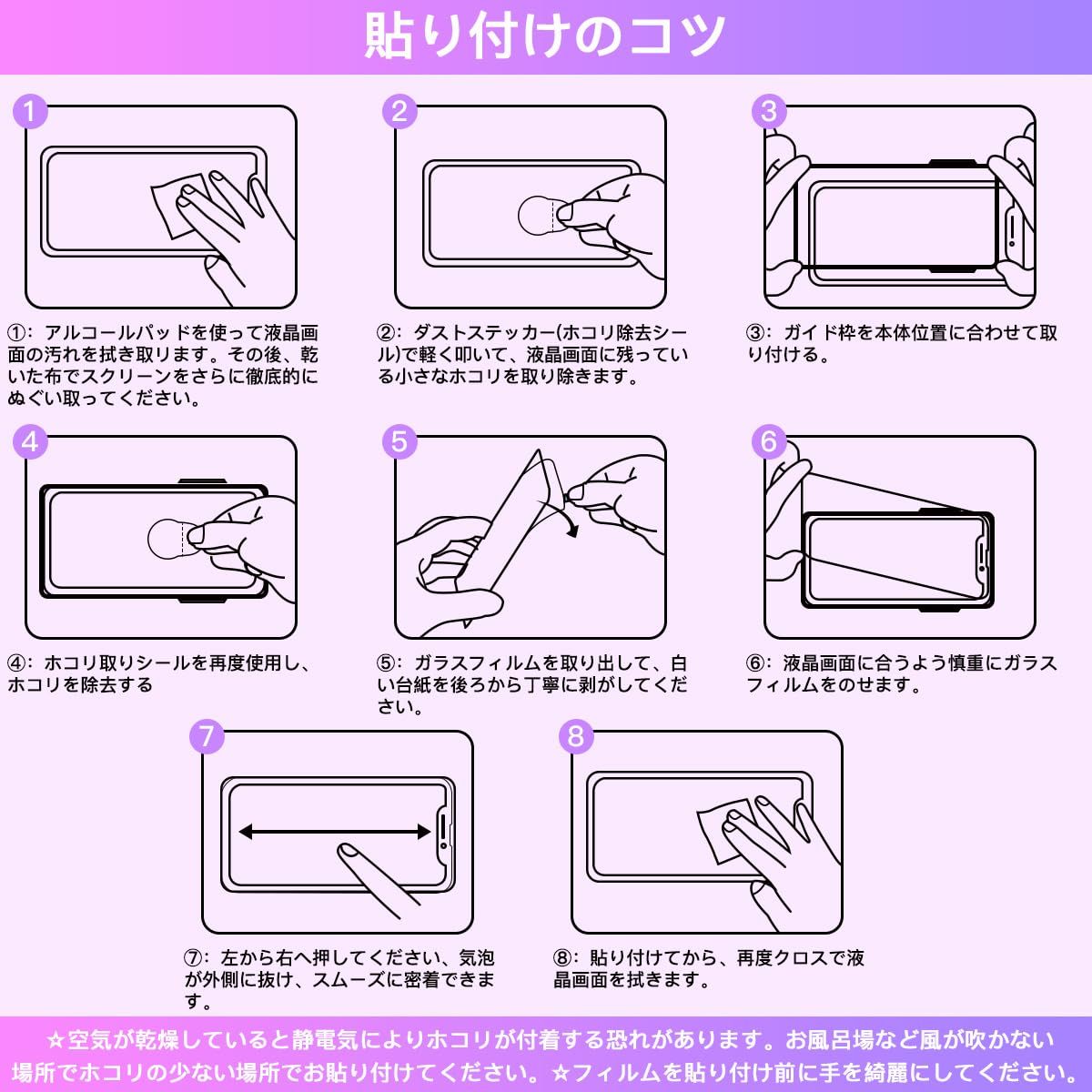 【指紋、油、水防止】ガラスフィルムの表面特殊な疎油処理されているため、画面感度に影響しなくて、簡単にタッチすることができ、指触りが抜群です。指紋や油分・水分の汚れが付きにくい、汗や皮脂、化粧品等が画面についてしまってもさっとひと拭きするだけです。