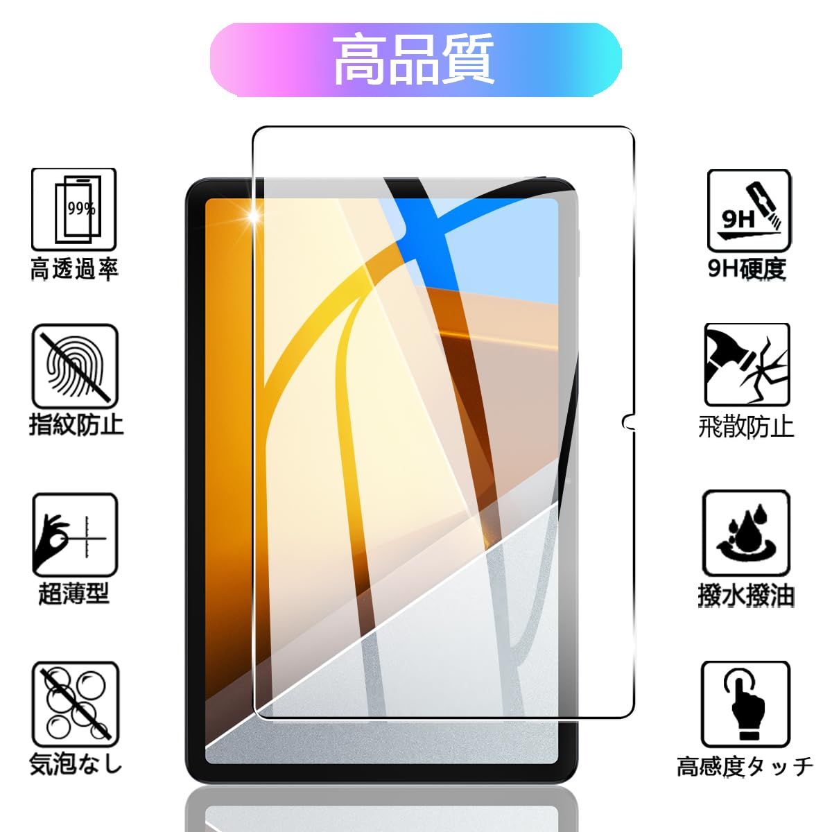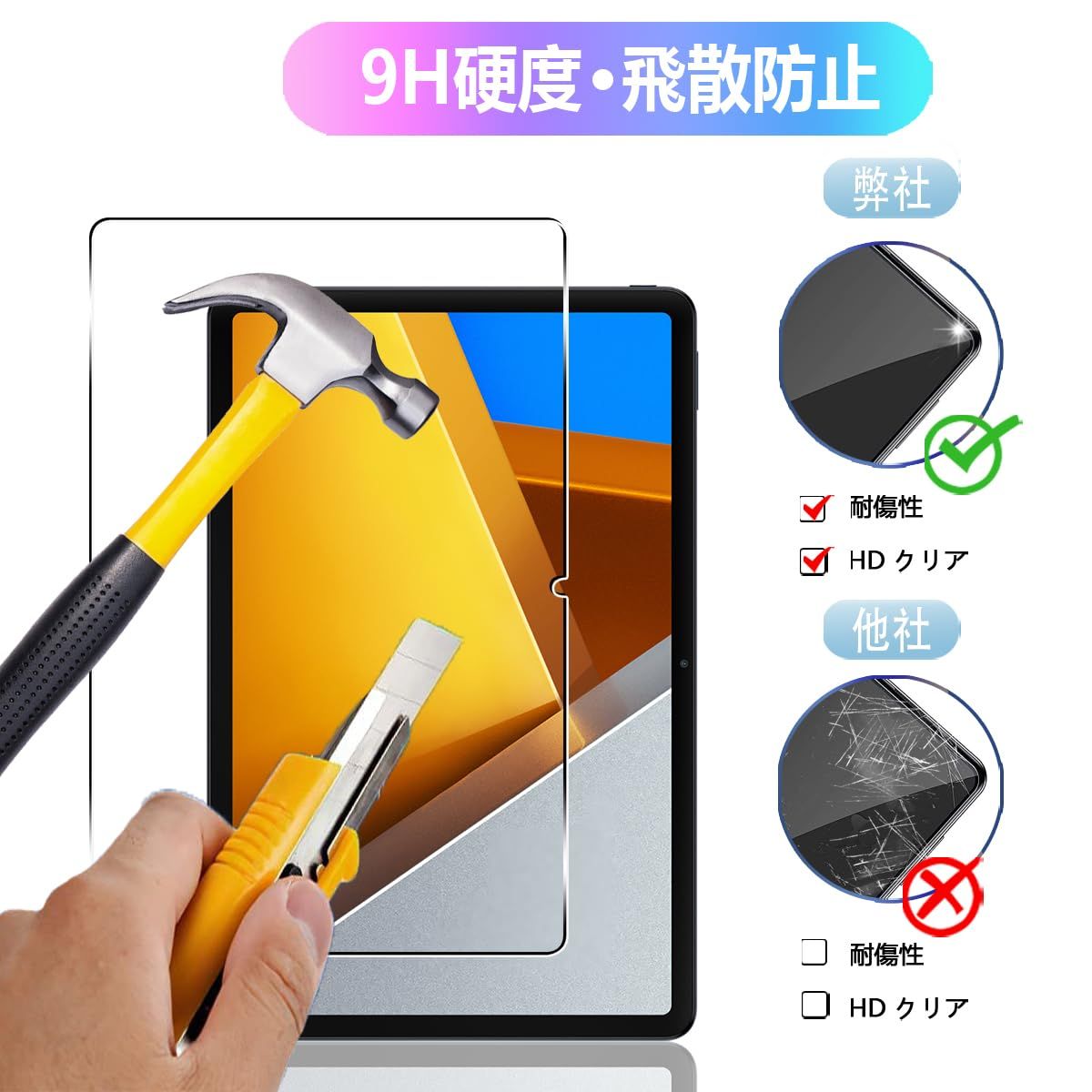 【9H硬度 飛散防止】対応 Xiaomi Redmi Pad 2 Pro / Poco Pad / Redmi Pad Pro 12.1インチ ガラスフィルム はす旭硝子で作られており、タブレット保護フィルムの中で高レベルの9H硬度に達しています。手にフィットして持ちやすく滑りにくいので落ちにくいです。万が一落ちてもフィルムが衝撃を吸収してくれるので、スクリーンの損傷を低限まで抑えられます。また、特殊な飛散防止設計により、ガラスが割れても飛散しないため。