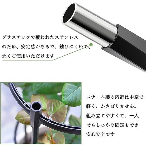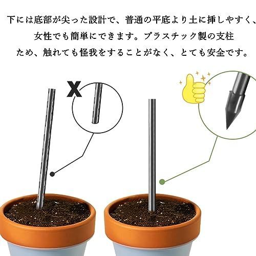 【高品質&安全】プラスチックで覆われたステンレスのため、安定感があるで、錆びにくいで、永くご使用いただけます。抗酸化、耐高温性、外側のプラスチックは熱が伝わりにくく、植物を燃やしません。中空なので、軽くて、下には底部が尖った設計で、普通の平底より土に挿しやすく、女性でも簡単にできます。プラスチック製の支柱ため、触れても怪我をすることがなく、とても安全です。