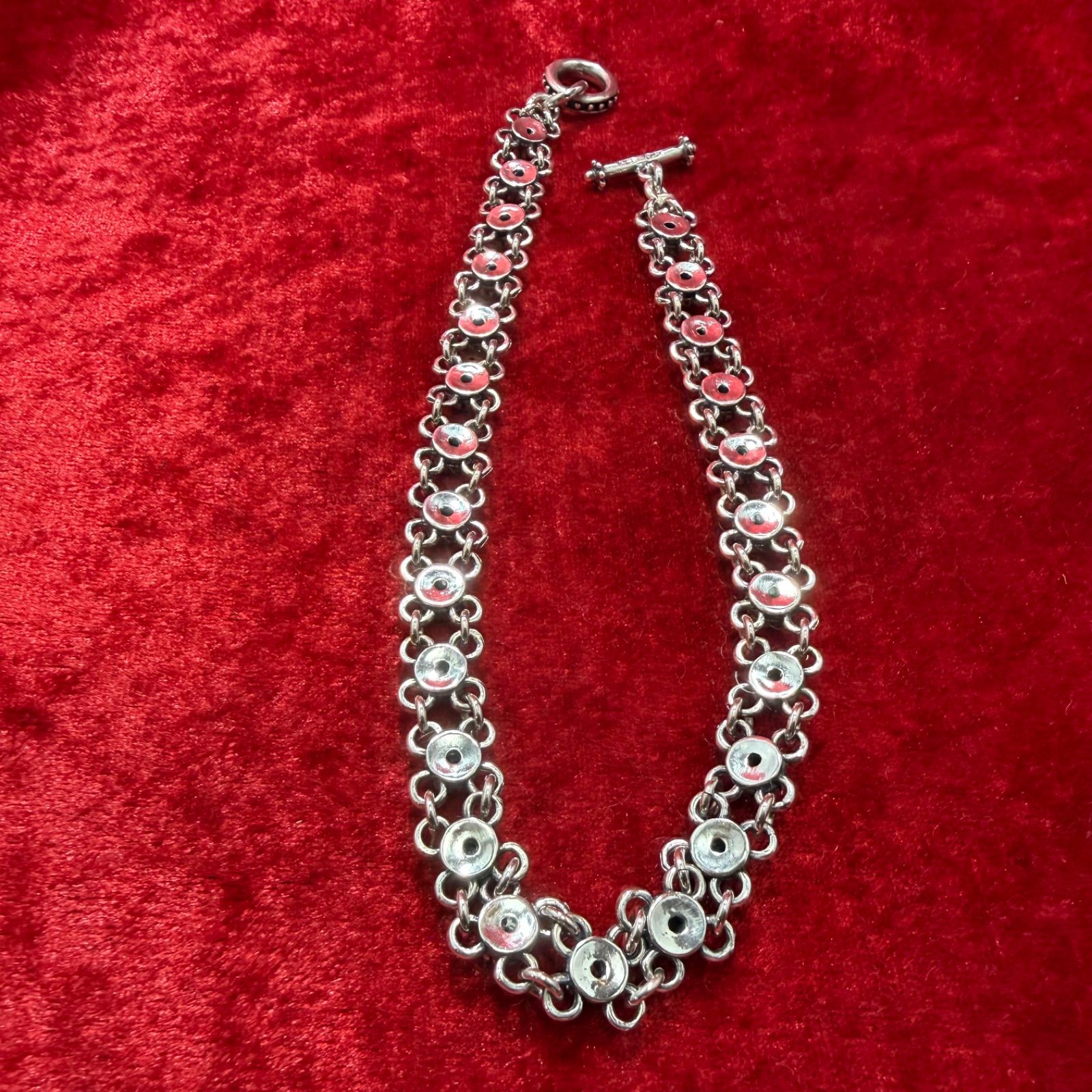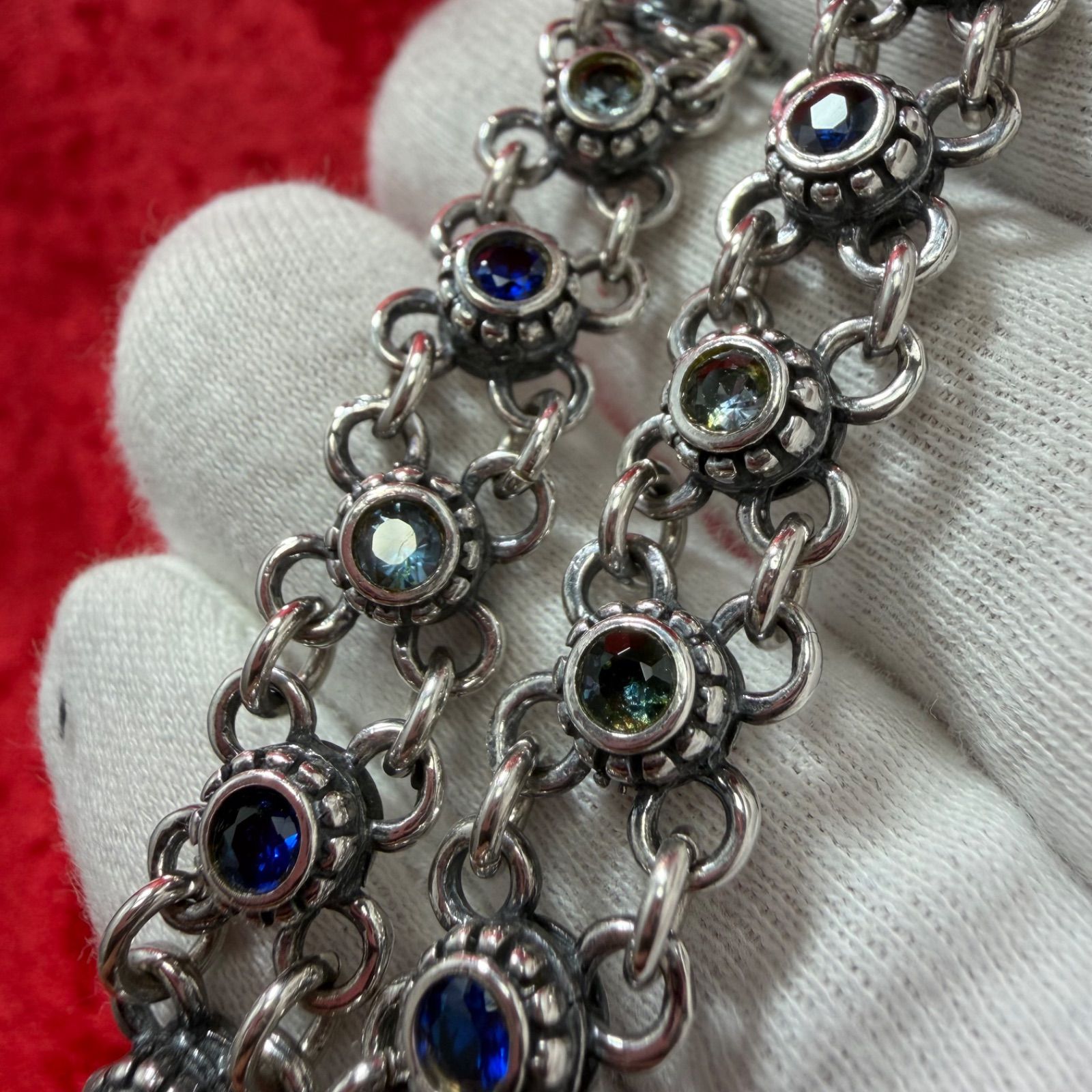 マーちゃんコメント:3色のカラーストーンが埋め込まれた長さが約32.5cmのチェーンです。綺麗な商品です。