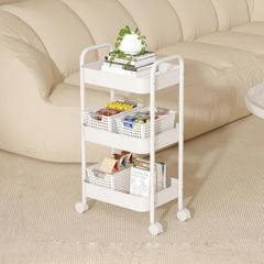 この製品は移動式で複数の棚があります。慎重に使用してください。重さは10kg(約22ポンド)までです。水面や不平等な表面で使用する場合は特に注意してください。子供に遊ばせないでください。すべての部品が適切に固定されていることを確認してから使用してください。