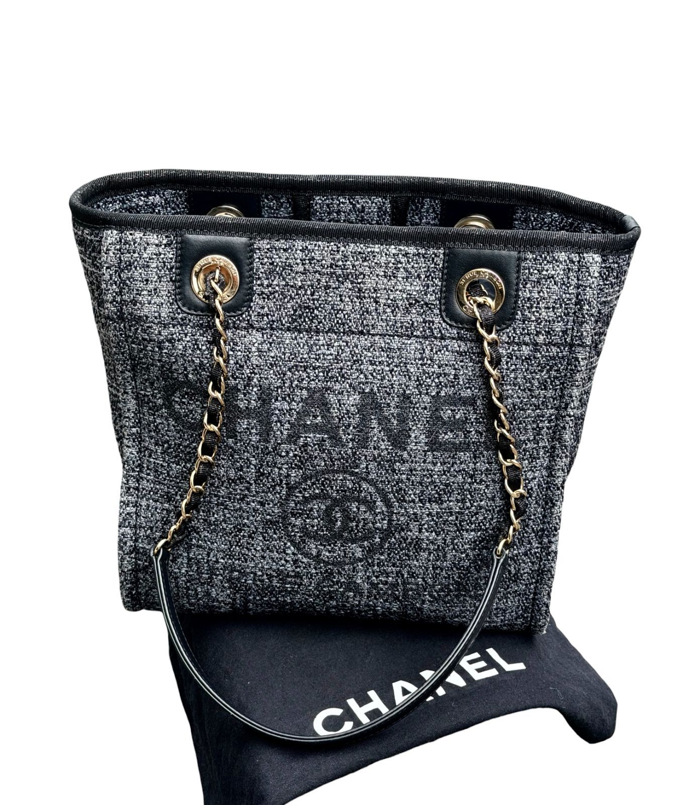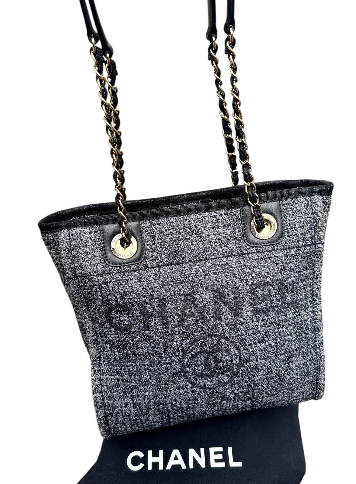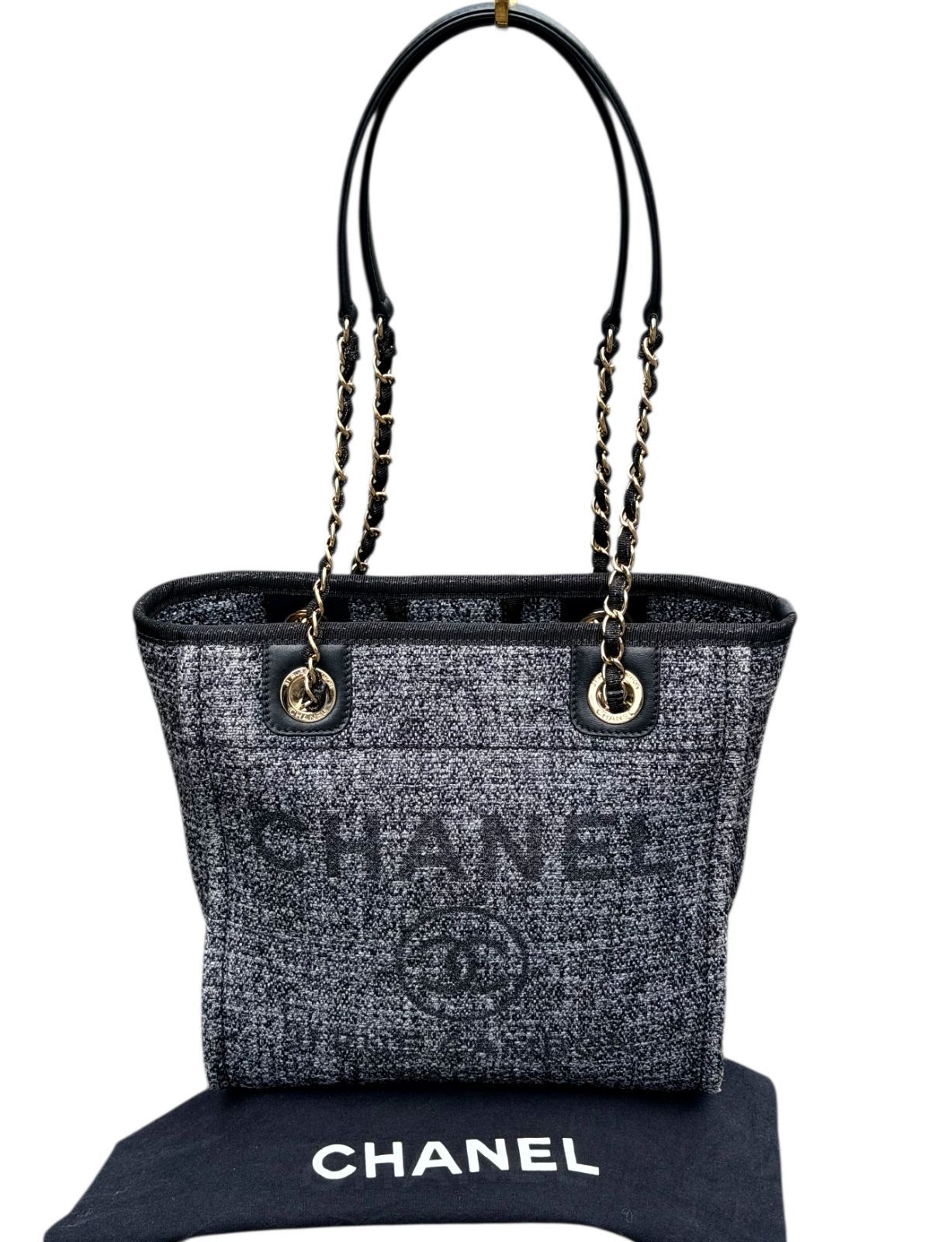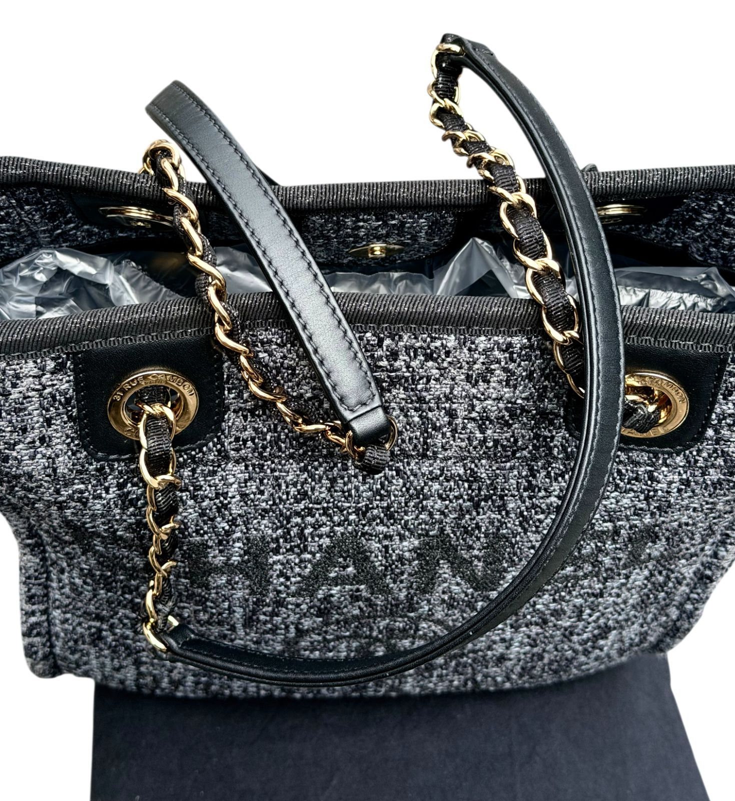 カラー/素材 :黒グレー系・ゴールド金具/ツイード・レザー