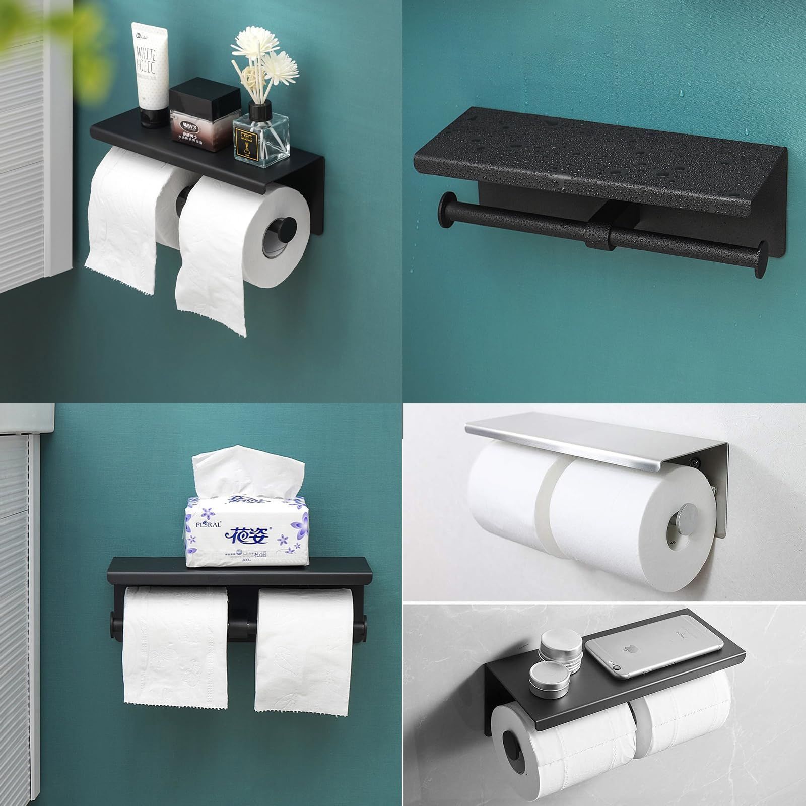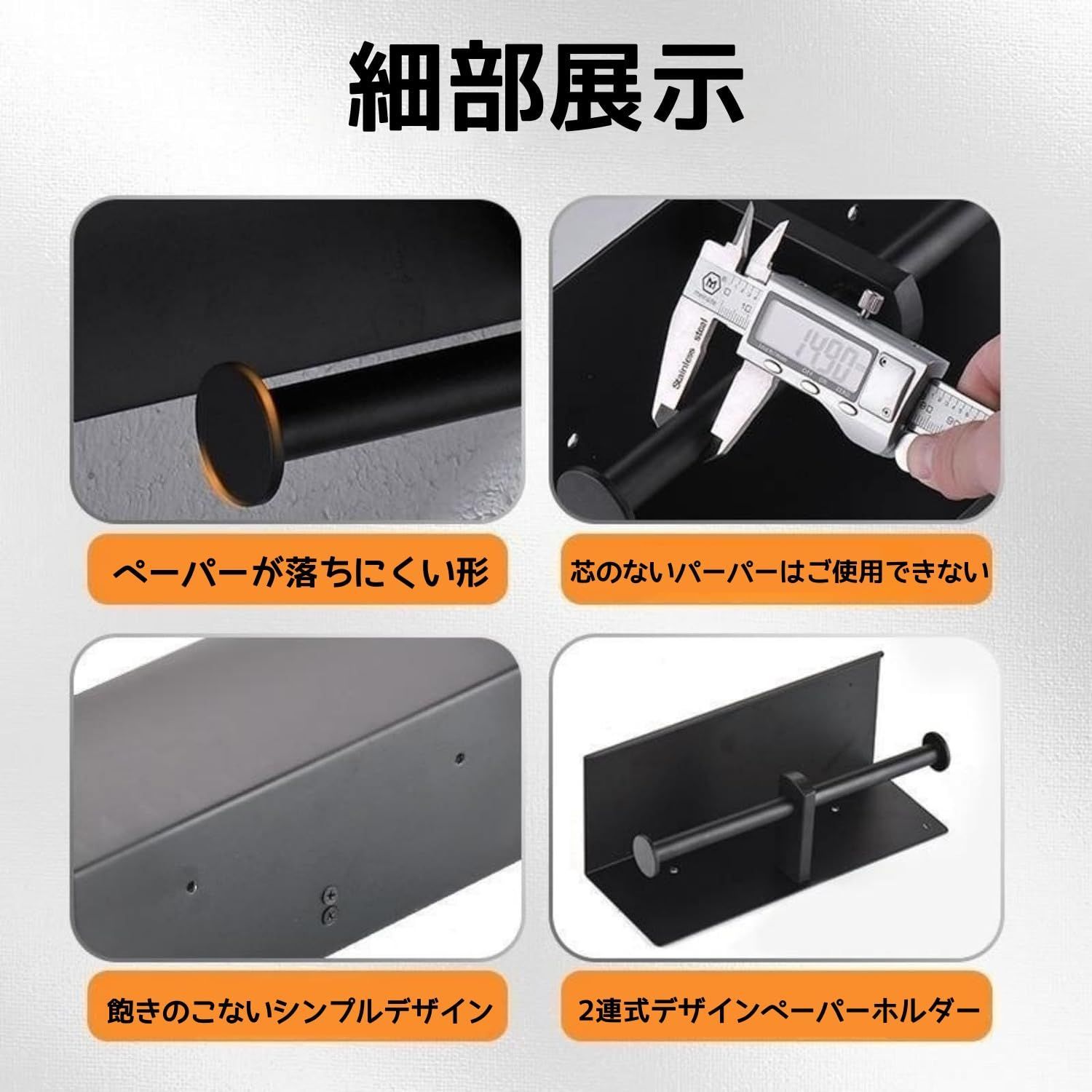 トイレットペーパーホルダー 2連 棚付き 紙巻器 壁取り付けネジ付き ステンレス製 小物置き バスルーム&キッチン用 簡単設置