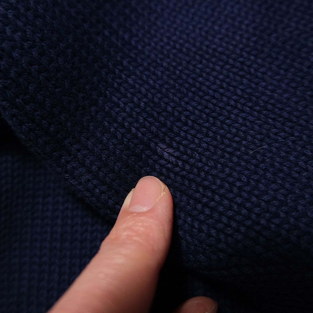 着用感、袖リブに折り目、折り目に沿って軽いホツレがあります。