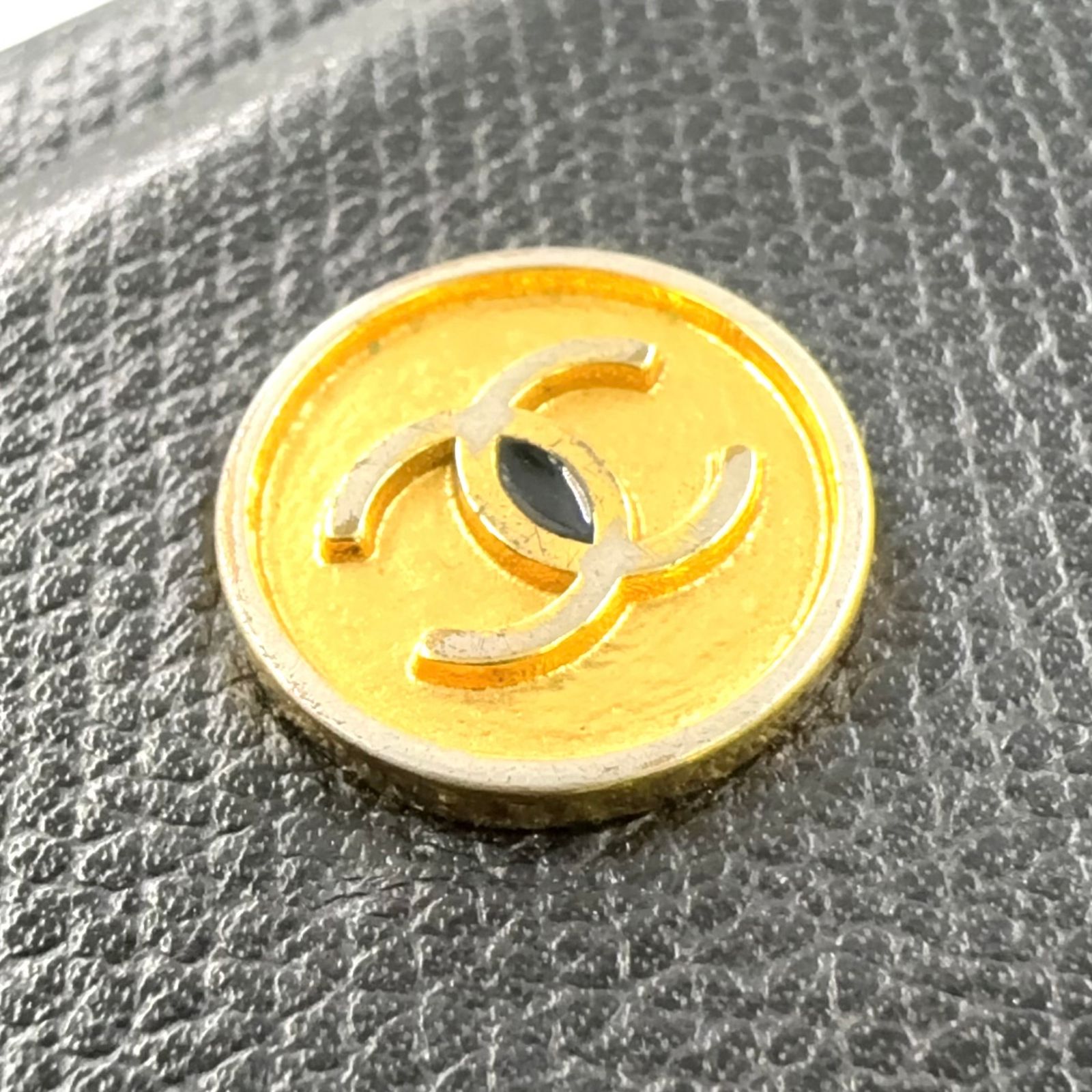 【商品名】CHANEL ココボタン 名刺入れ シリアル番号9番台 レザー ブラック カードケース ゴールド