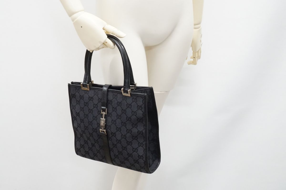 グッチ ジャッキー ハンドバッグ トート 002 1065 3444 シルバー金具 GGキャンバス 黒 ブラック GUCCI 5860h
