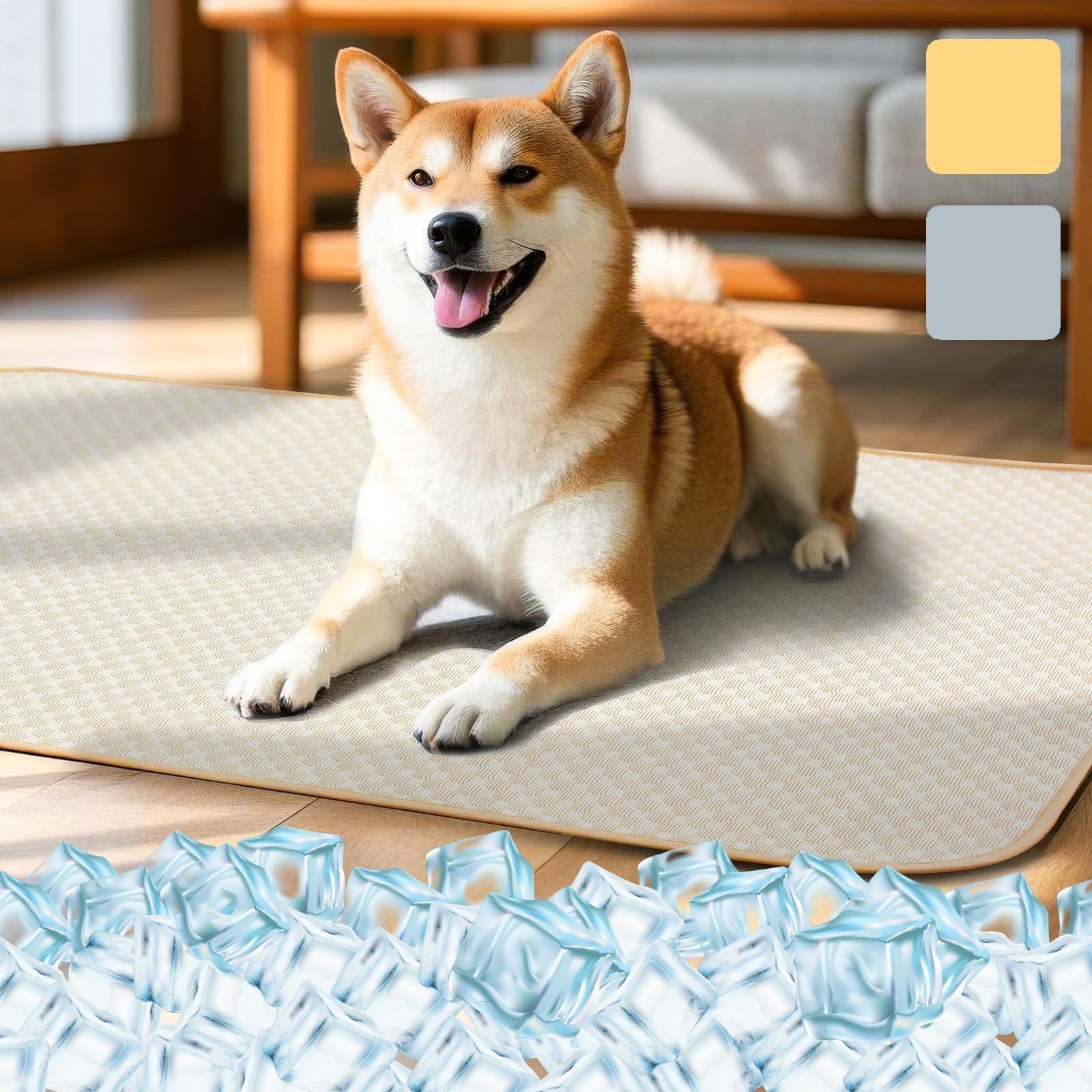 ? 【ひんやり持続|アイスシルクの瞬間冷却】 犬猫が乗るだけで「接触冷感級」のひんやり感。高密度アイスシルク繊維が熱を拡散し、真夏の室内でも涼しい寝床をキープ。夏の暑さで疲れたペットの体温を効果的に冷却。