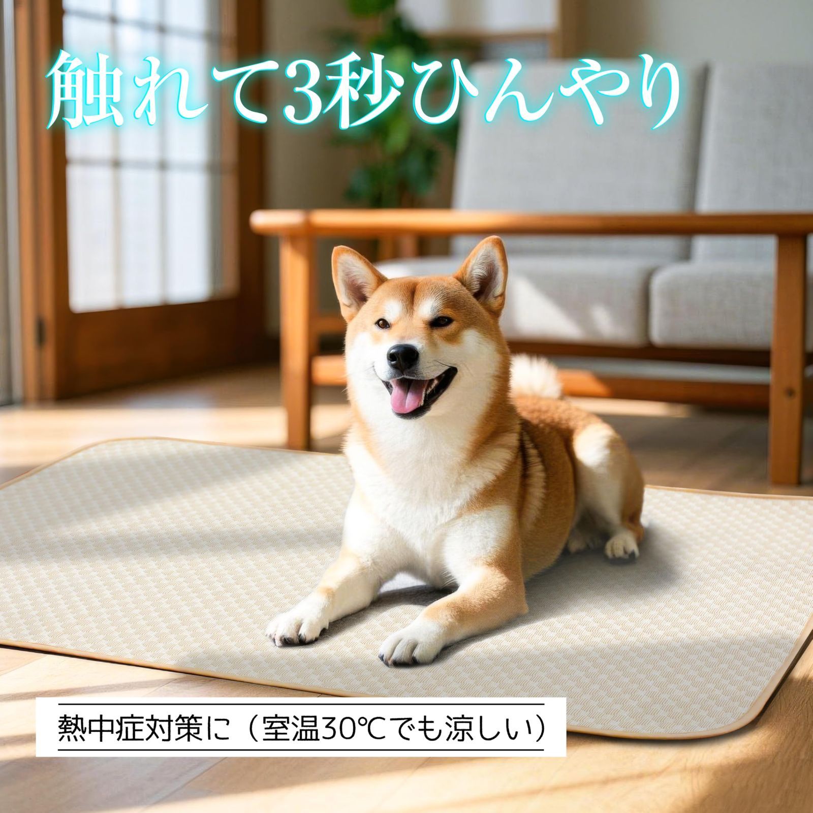 ? 【安全設計|ペットに優しい配慮】 天然冰絲(アイスシルク)の純正素材を使用した自然な涼感設計。化学冷却剤・アルミプレート一切不使用で、子犬・老犬のデリケートな肌にも安心。
