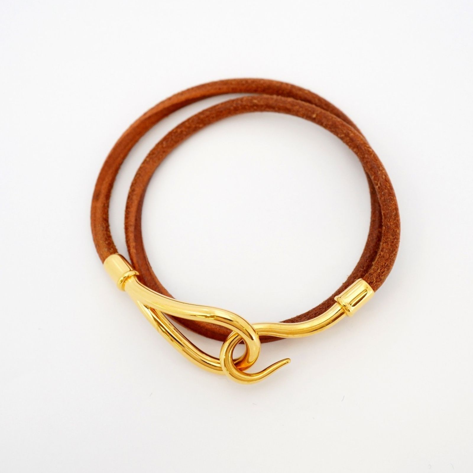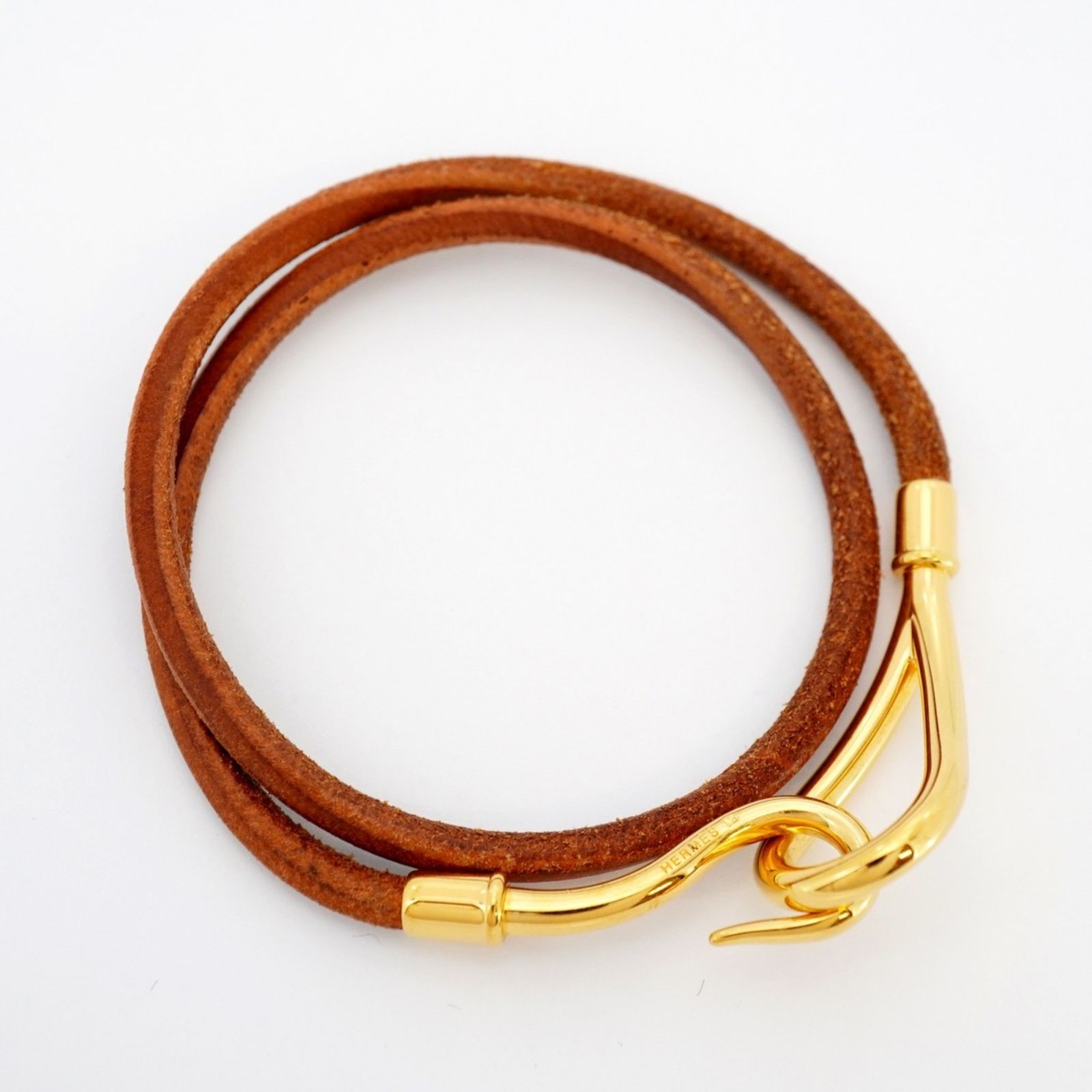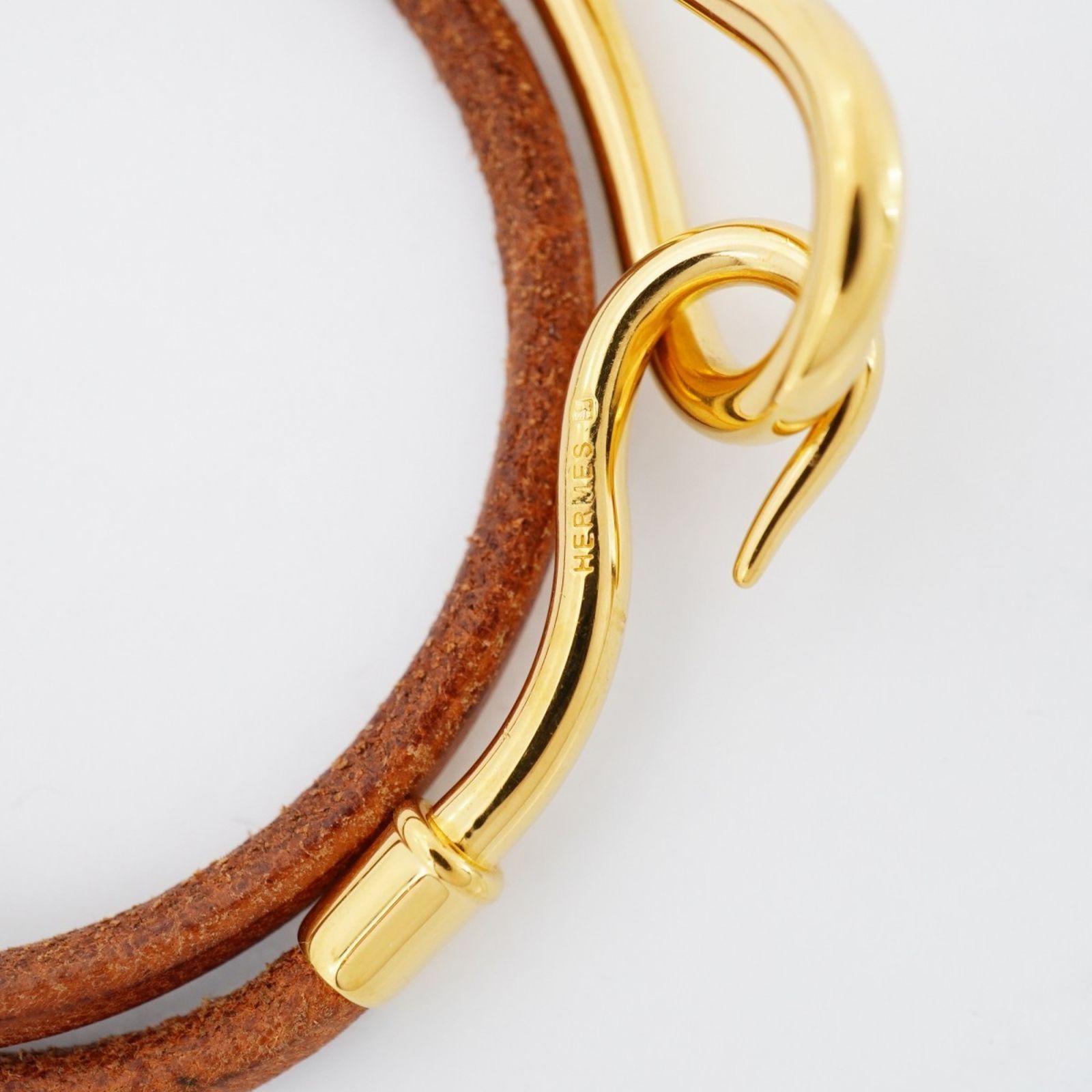 エルメス(Hermes) エルメス ブレスレット ジャンボフック GPメッキ レザー ゴールド ブラウンレディース