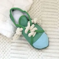 スリッパ型のペットトイ。カシャカシャキュッキュと音がなります。