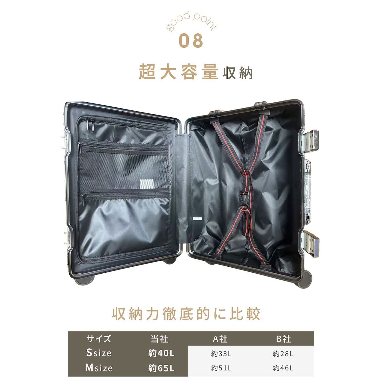 機内持込が可能なサイズでコンパクトでありながら、合金製コーナーガードを付けており、高級感の溢れたデザインと衝撃から守る耐久性を兼ね備えています。