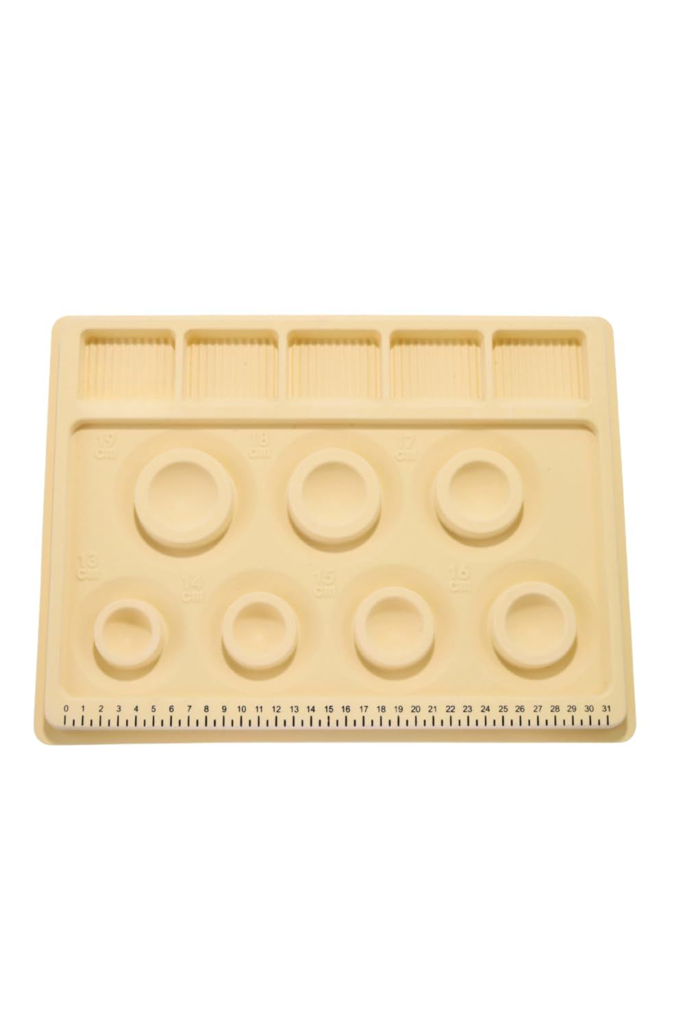 【製品の詳細】ブレスレットデザイン板の円周は13cm、14cm、15cm、16cm、17cm、18cm、19cmの7つのサイズが含まれており、円形ガイドでサイズ感が一目瞭然、デザインがスムーズに。