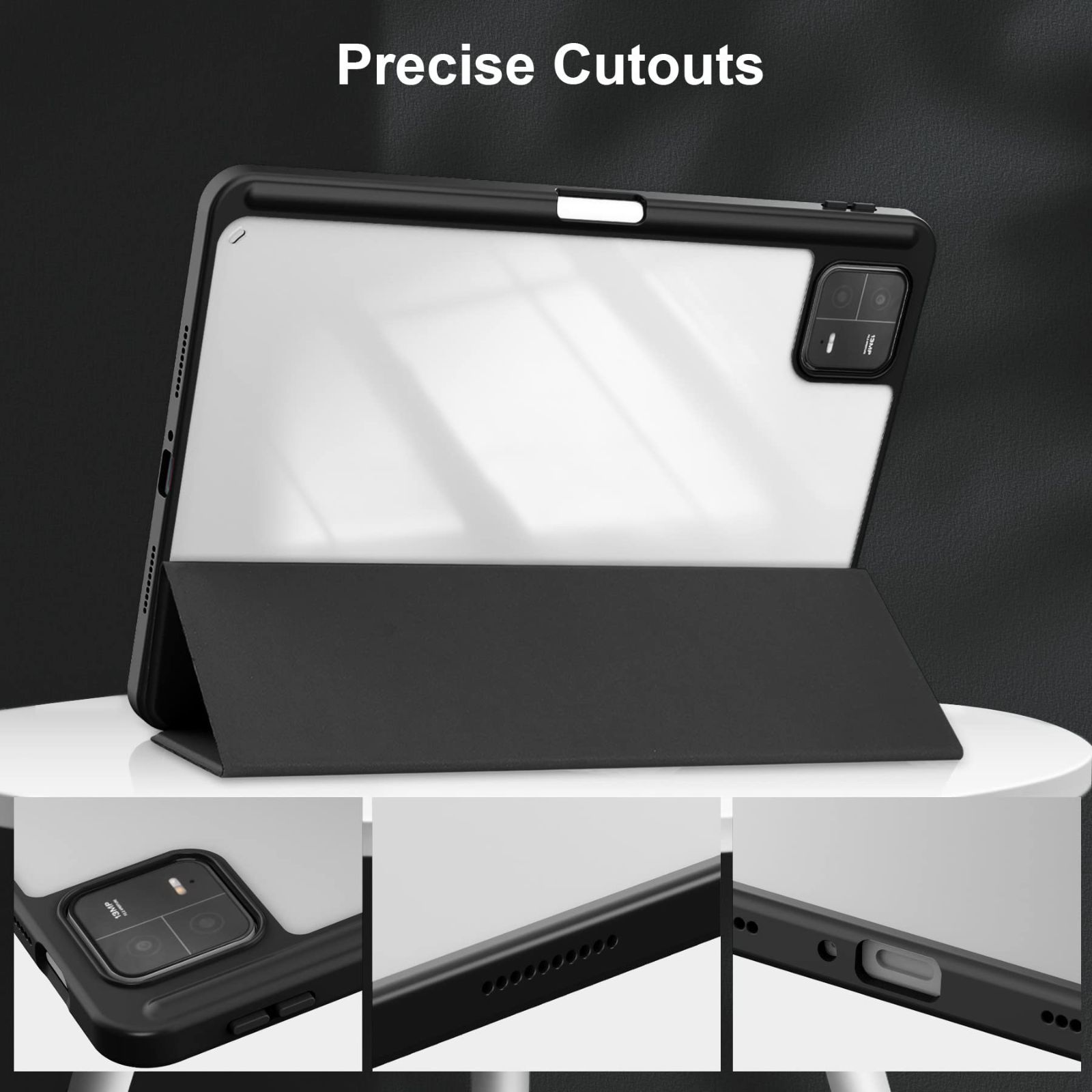 Xiaomi Mi Pad 6 / Pad 6 Pro ケース 透明 Xiaomi Pad 6 ケース クリア ペンホルダー付き 三つ折スタンド オートスリープ機能 おしゃれ 手帳型 軽量 薄型 シャオミパッド6/6 Pro専用保護カバー 耐衝撃 全面保護 ブラック