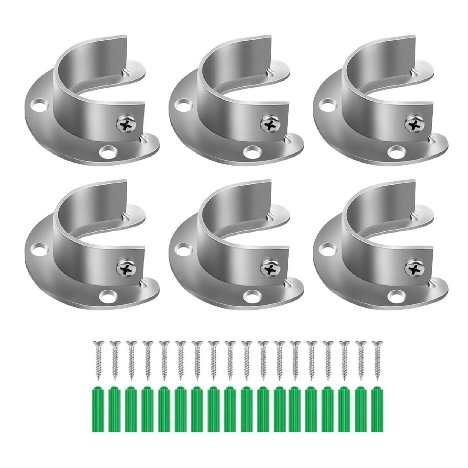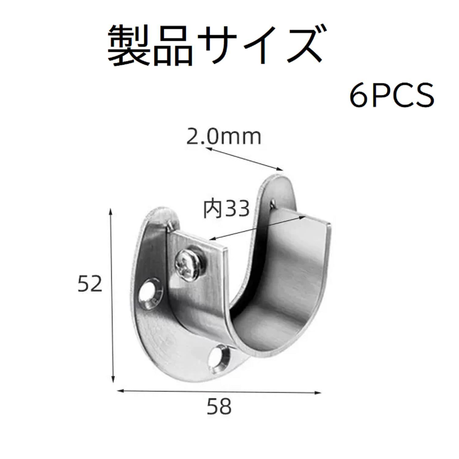 「商品仕様」素材:ステンレス、パッケージ内容:クローゼットポールソケット*6個、ネジ*18個。対応パイプサイズ:32mm。ご注文前にサイズをご確認ください