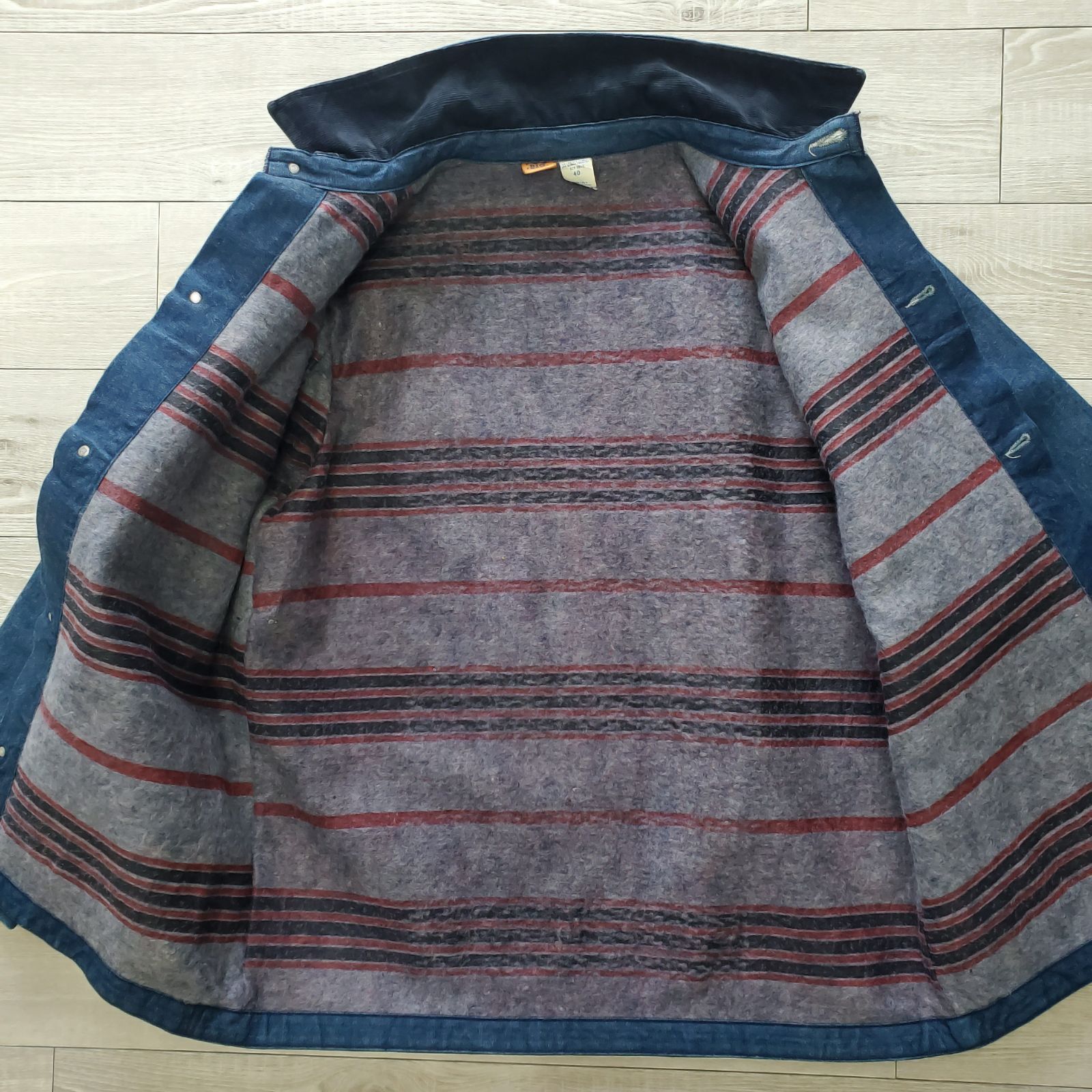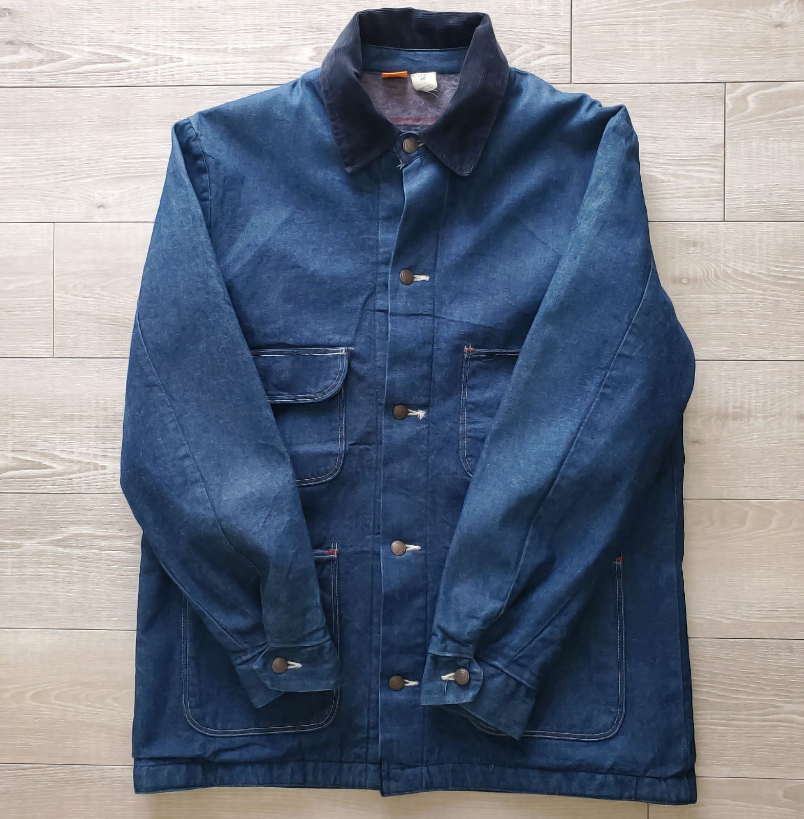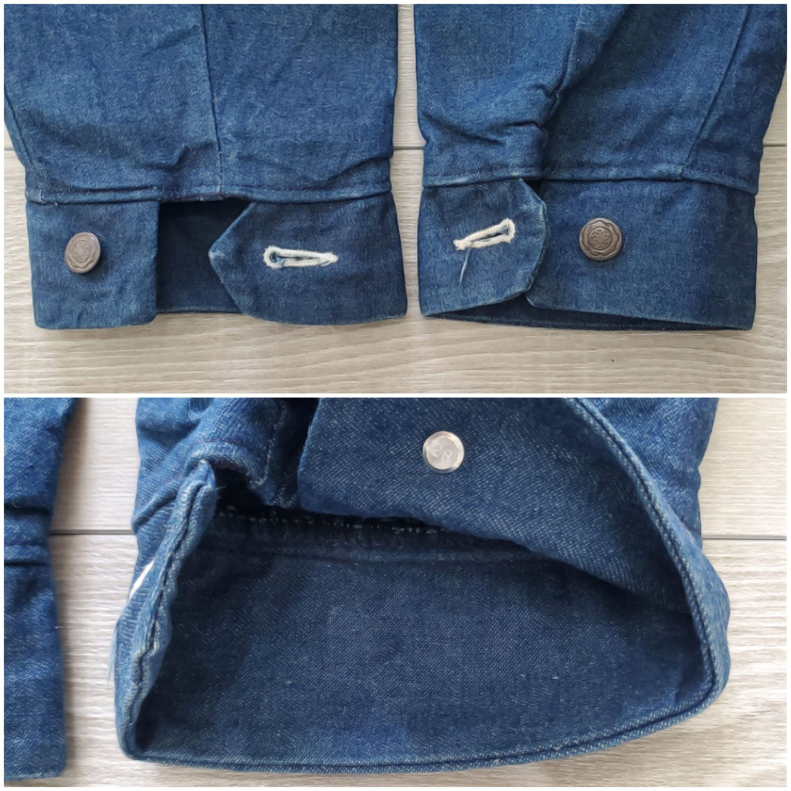 デッドストックに近い状態でしたが、保管による匂いとシワがあったため、デニム専用洗剤にてつけおき洗いを施しましたので、清潔な状態でご着用いただけます。