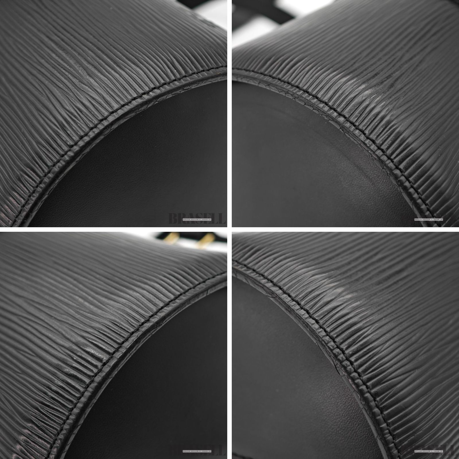 「全体」全体擦れ(小) 角擦れ(中) 持ち手・ショルダーひび(小)リペア済 付け根伸び切れ(小) 金具キズ(小) 内側汚れ(小) ポーチ劣化ハンドル リペア済