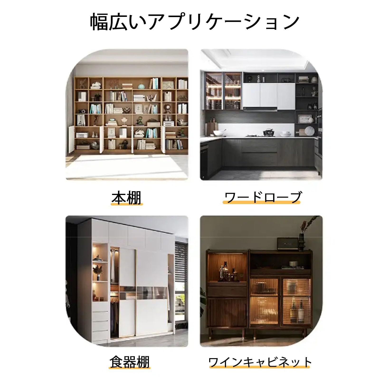 【幅広い用途】これは家具やカラーボックスなどに棚を固定するための棚ダボです。食器棚、本棚、陳列棚、家具、クローゼット、下駄箱、キャビネット、展示棚、食品貯蔵室棚などによく使われます。