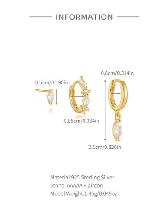ジュエリー レディース イヤーアクセサリー セット ジルコニア 925スターリングシルバー非対称ピアス 3個セット レディース ピアス フープ ピアス 結婚式 ブライダルジュエリーに最適