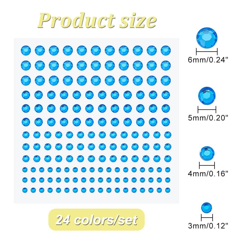 4サイズ:当社のキラキララインストーンステッカーは高品質のアクリル製で、透明感があり、光沢があります。直径約3mm/4mm/5mm/6mm、24枚/セット(24色)、大容量、約3160個のラインストーン、さまざまな工芸品を作るには、豊かな形や色で、お客様のニーズを満たす。