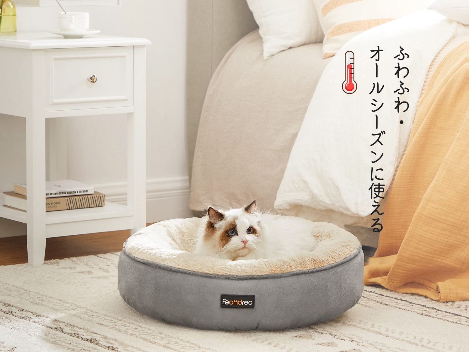 FEANDREA 犬 ベッド ペットベッド 猫 犬 50×50cm クッション ふわふわ 滑り止め 洗える ペットソファー 可愛いドーナツ型 中小型犬用 マット PGW050G01