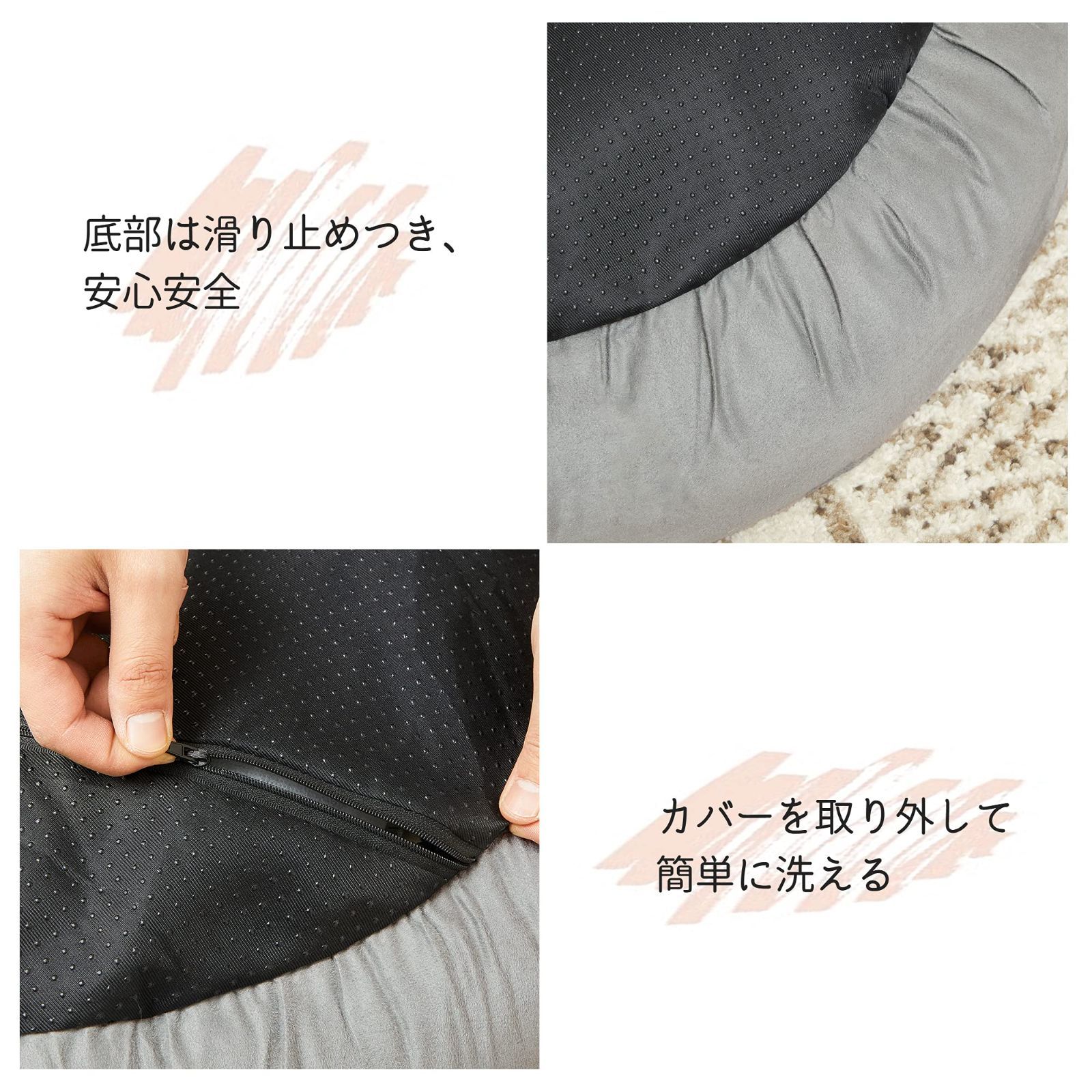 洗練されたデザイン:可愛いドーナツ型のデザインがペットの体を丸く包まれ、安心感を与えてくれます。あごのせしやすいフチともちもちのクッションが癒しの寝心地。底部の表面には滑り止めのデザインがされているので、ペットがどんなに動いても滑りにくいのがメリット