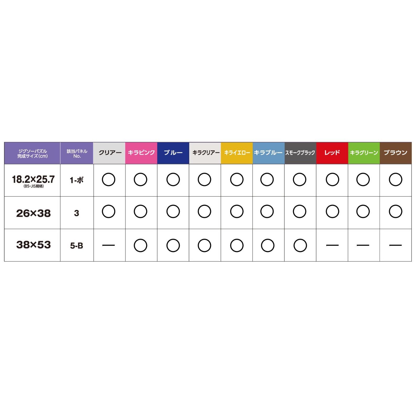 適合パズルサイズ 26×38cm パネル番号 3 カラフルでポップ! ジグソーパズルを可愛く演出します。 お買い求めやすいお値段も魅力! 落ち着きのある色合いと透明感がミックスしたブラウンは絵柄と自然に調和します。 専用スタンド付き