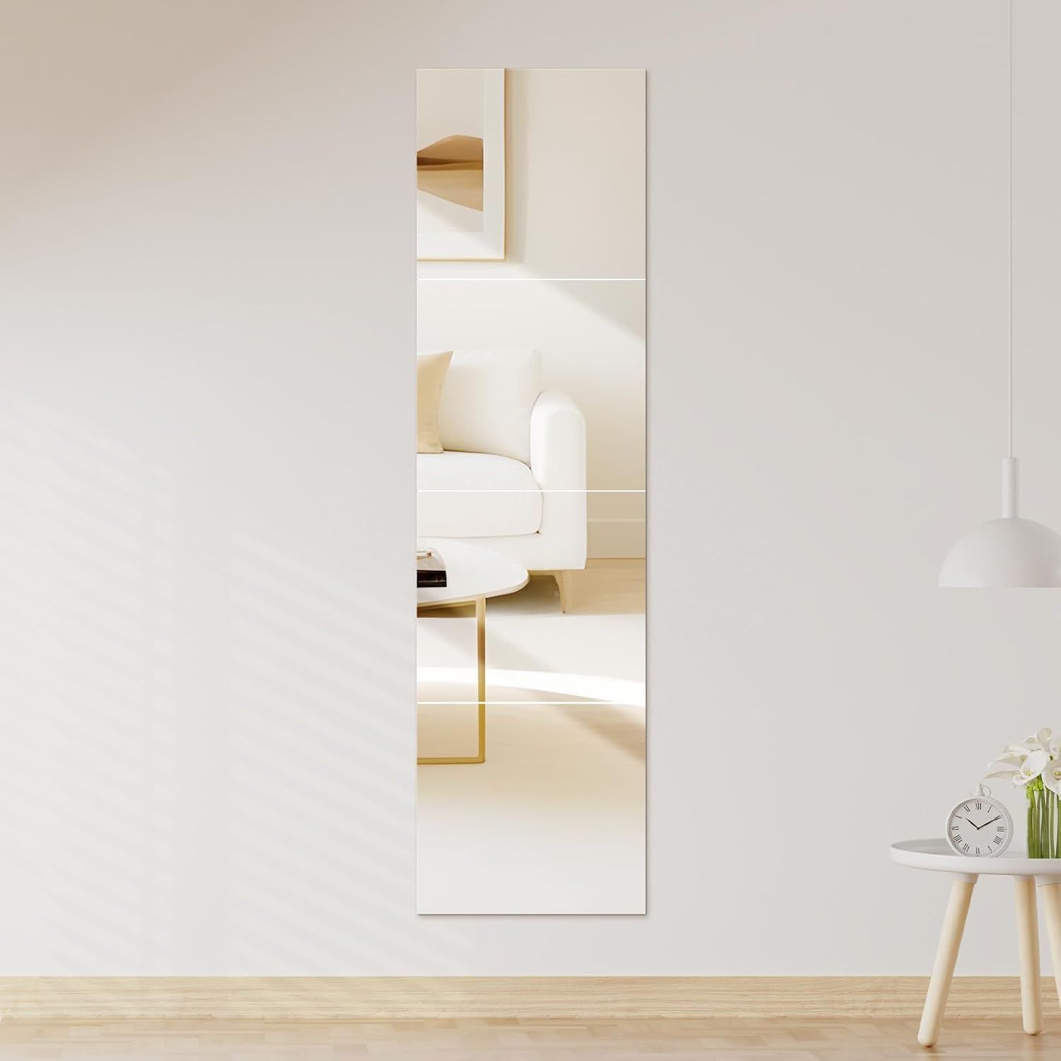 全身鏡 高さ120cm×幅28cm 壁掛け 貼る鏡 割れない鏡 軽量 姿見鏡 穴あけ不要 アクリルミラー 浴室 風呂 自由に組み合わせ可能 (30cm*28cm*4枚)